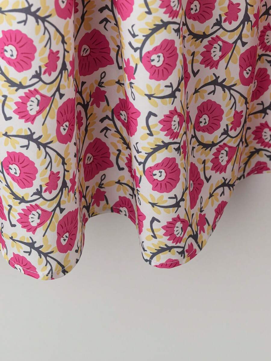 طقم من قطعتين من بلوزة بأكمام قصيرة وربطة أمامية من Breezaya بمقاسات كبيرة للنساء بطبعة زهور وتنورة برباط على الخصر