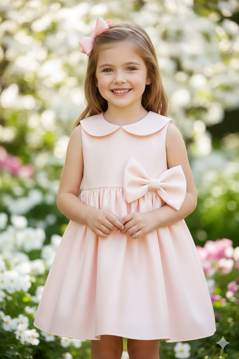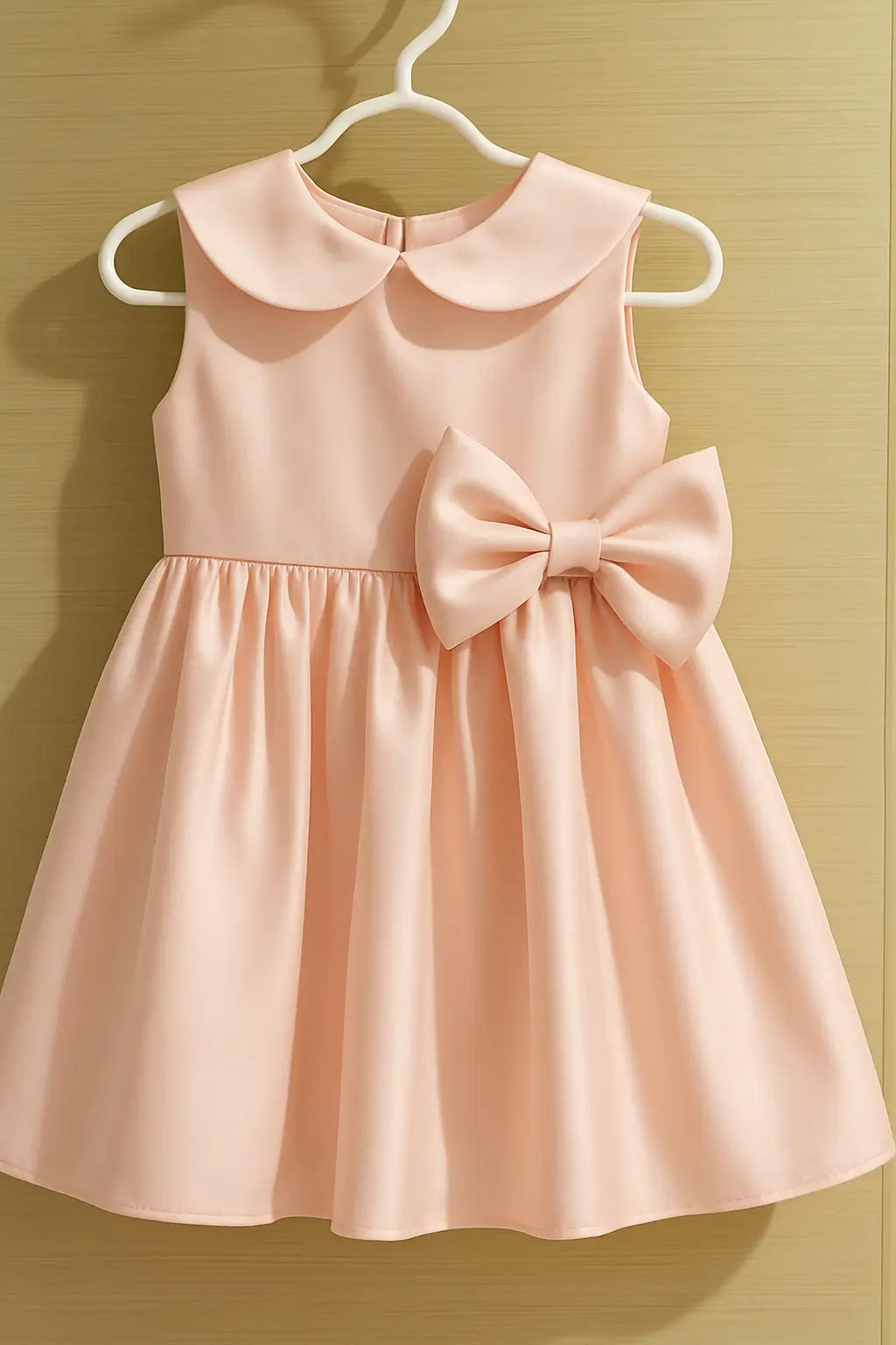 فستان أطفال أنيق من Shein مصنوع من قماش ساتان ناعم باللون الوردي الفاتح يمنح مظهرًا راقيًا وناعمًا. يتميز بياقة بيتر بان كلاسيكية وفيونكة جانبية كبيرة تضيف لمسة مميزة على التصميم. الإغلاق بسوستة خلفية مخفية لتوفير راحة وسهولة في اللبس. خيار مثالي للمناسبات والحفلات ليمنح طفلتك إطلالة أنثوية جذابة.