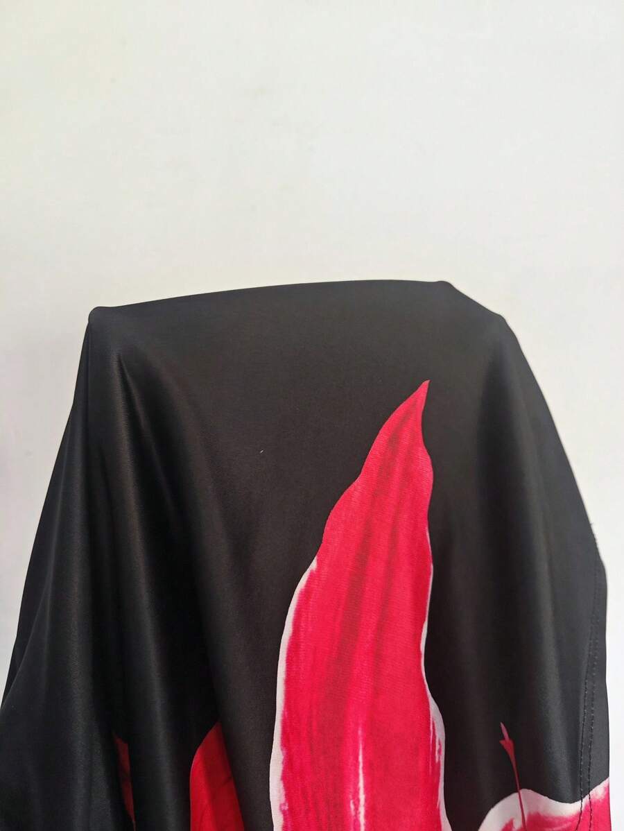 فستان صيفي قصير بدون أكتاف من Glamine – تصميم جذاب باللون الأحمر وطبعة زهرية على خلفية سوداء