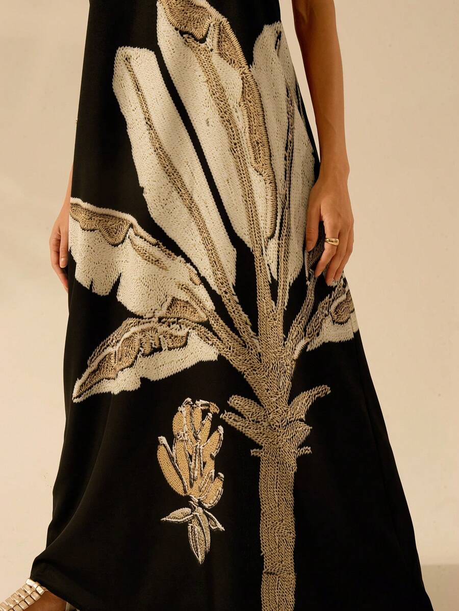 فستان كاجول نسائي بوهو – بدون أكمام بطبعة نخيل استوائي
