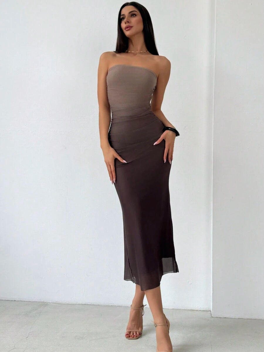فستان نسائي صيفي من Aloruh بأسلوب أمريكي، بدون حمالات، بتدرّج لوني شبكي وقصّة ضيّقة
