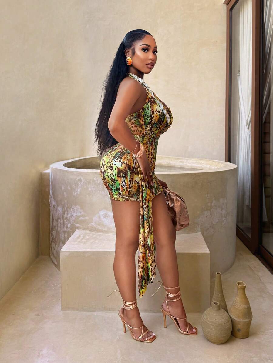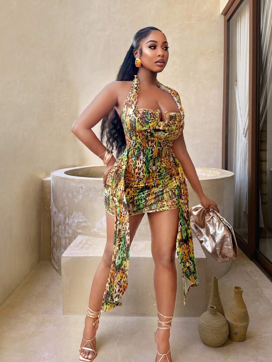 فستان BamGleam النسائي القصير بتصميم مستوحى من أجواء العطلات الصيفية، يجمع بين الأناقة والراحة بأسلوب عصري مفعم بالحيوية. يتميز بطبعة خضراء جذابة تعكس روح الطبيعة والانتعاش، مع حمالات حول الرقبة تضيف لمسة أنثوية رقيقة.