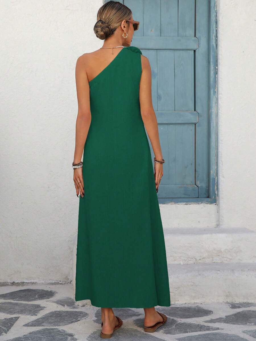 فستان Breezaya النسائي الكاجوال الفضفاض من الكتان بلون سادة مناسب ، بدون أكمام، مع فتحة حاشية مزخرفة بالزهور ثلاثية الأبعاد