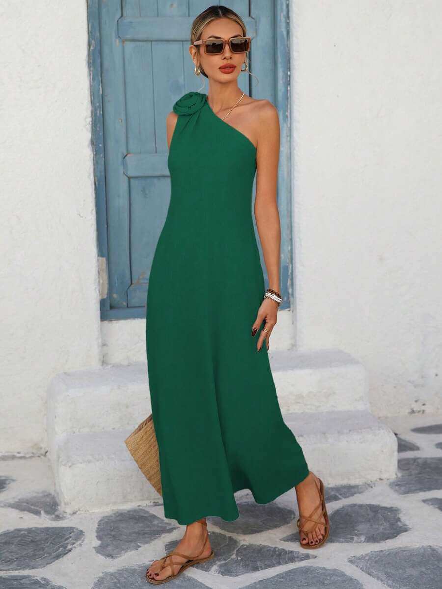 فستان Breezaya الكاجوال الفضفاض من الكتان - بدون أكمام، مزين بزهور ثلاثية الأبعاد