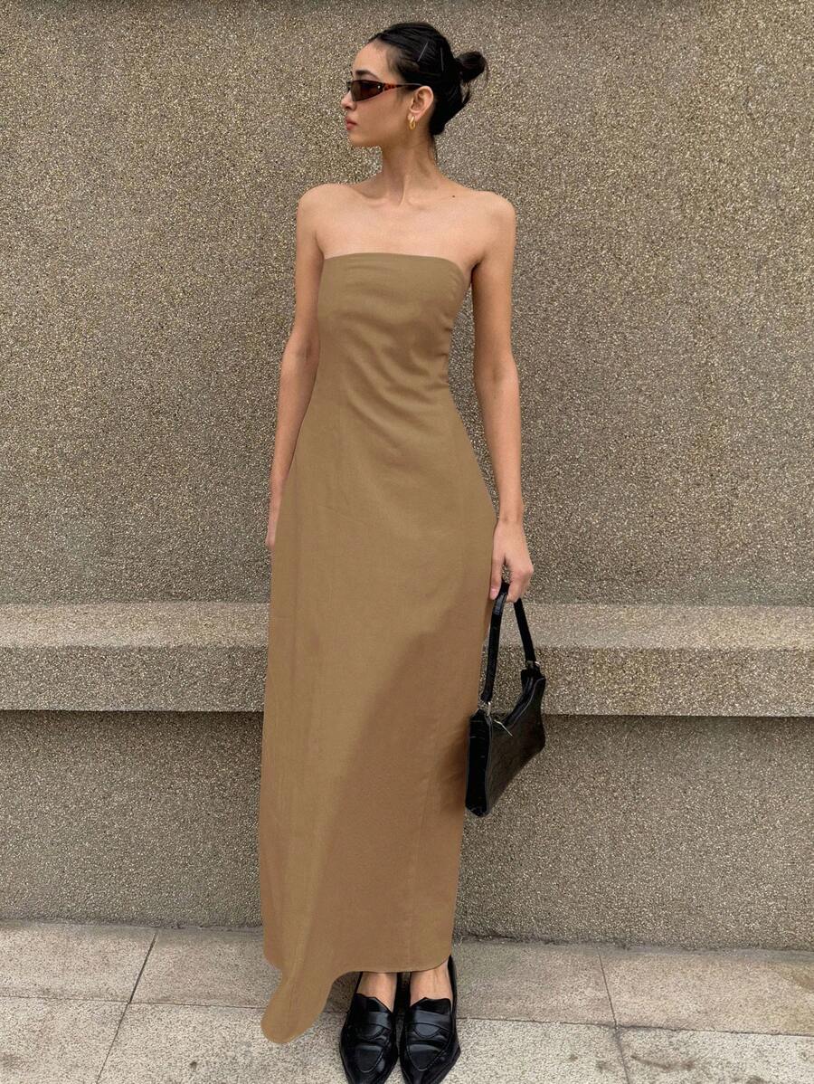 فستان DAZY سادة بدون أكمام، فستان طويل أنيق للنساء، فستان صيفي من الكتان