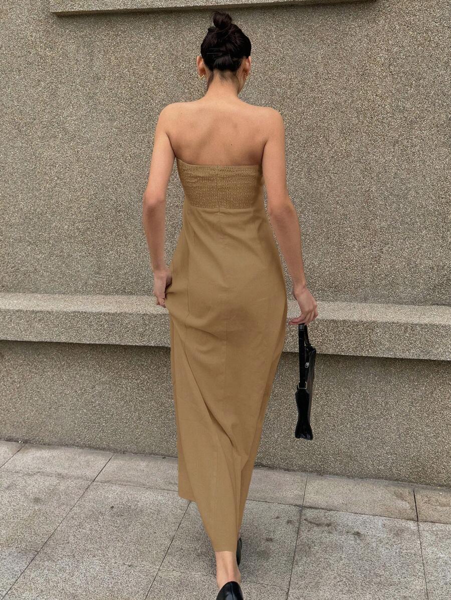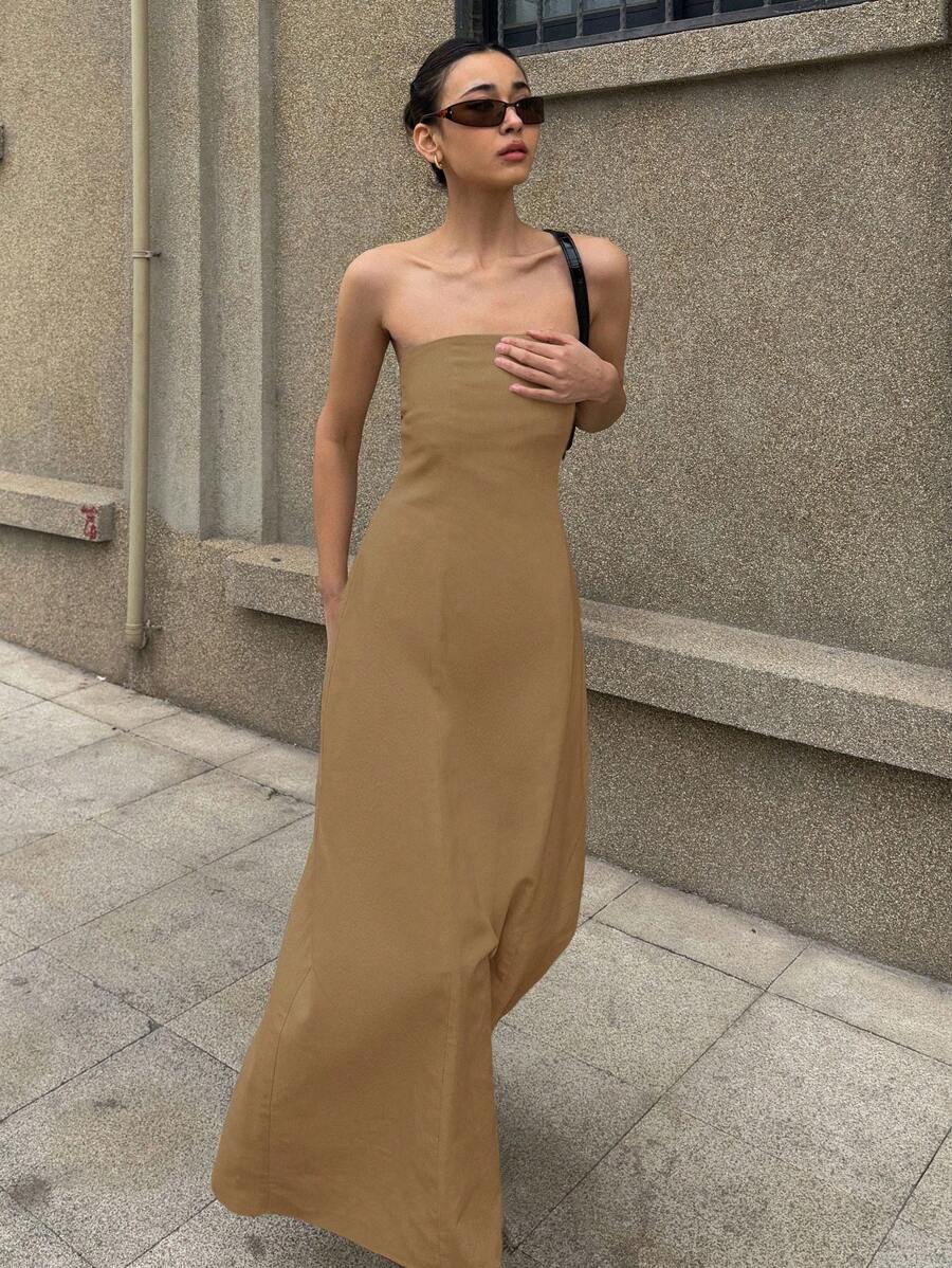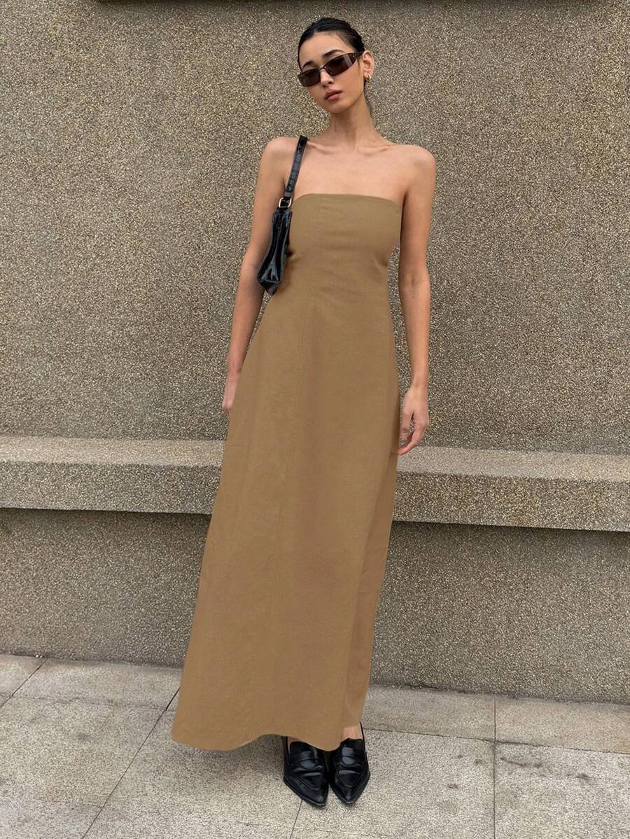 فستان DAZY الطويل المصنوع من خامة الكتان الطبيعية، بتصميم سادة بدون أكمام يمنحك إحساسًا بالانتعاش والأناقة في الأيام الدافئة.