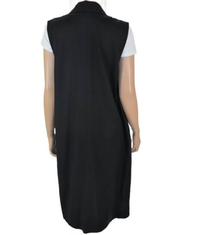 فيست طويل من Shein يأتي بتصميم كلاسيكي أنيق باللون الأسود، بدون أكمام ويتميز بياقة عريضة تضيف لمسة عصرية. خامته مريحة وخفيفة، مما يجعله مثالي للتنسيق مع بلوزات أو قمصان لطبقات أنيقة. مناسب للإطلالات اليومية أو لإضافة لمسة رسمية بسيطة على لوك العمل