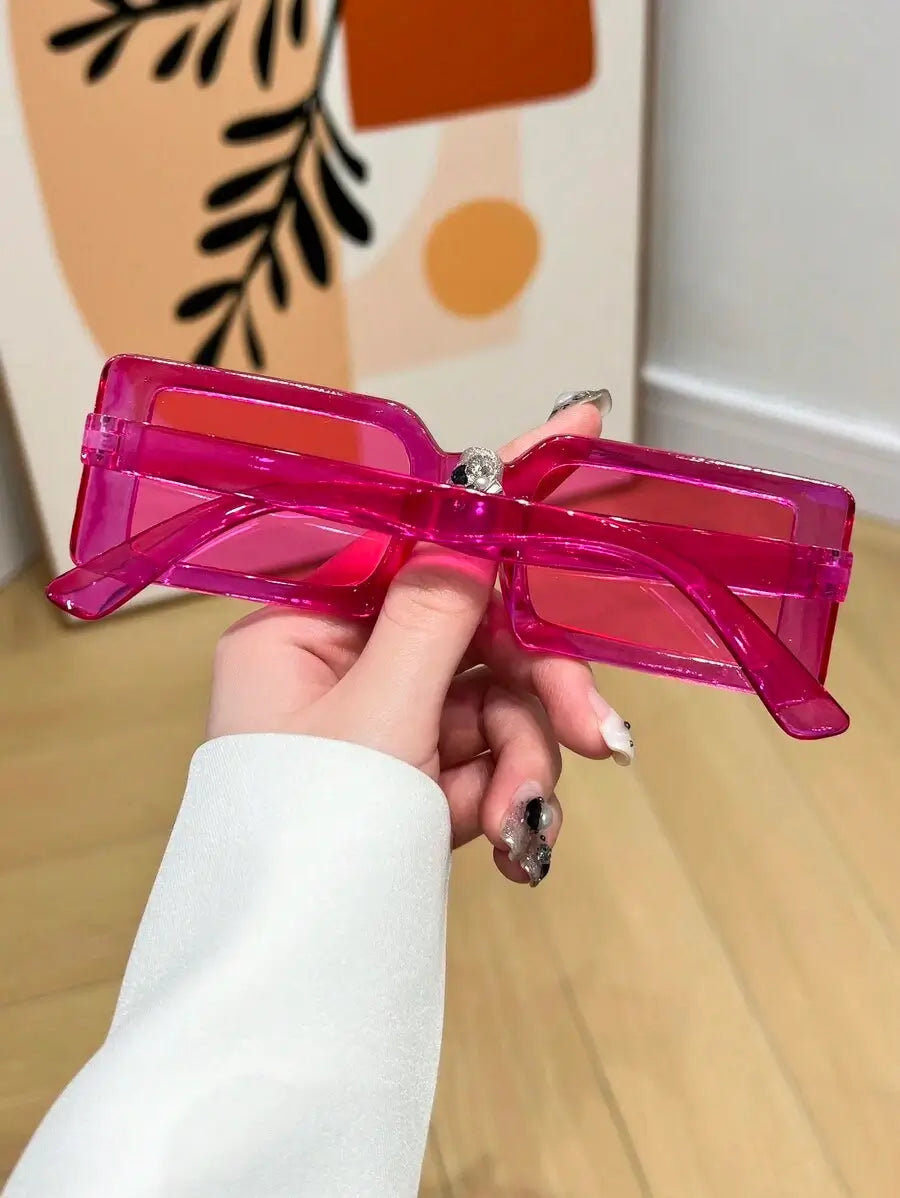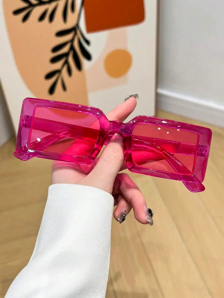نظارة شمسية أنيقة بتصميم مستطيل كبير الحجم باللون الفوشيا الشفاف، تجمع بين الجرأة والموضة العصرية. تأتي بعدسات ملونة بنفس الدرجة لتمنح مظهراً ملفتاً ومتكاملاً مع الإطار، مما يجعلها قطعة مثالية لعشاق الإطلالات المميزة. مصنوعة من خامة بلاستيكية متينة وخفيفة الوزن لضمان الراحة وسهولة الارتداء طوال اليوم