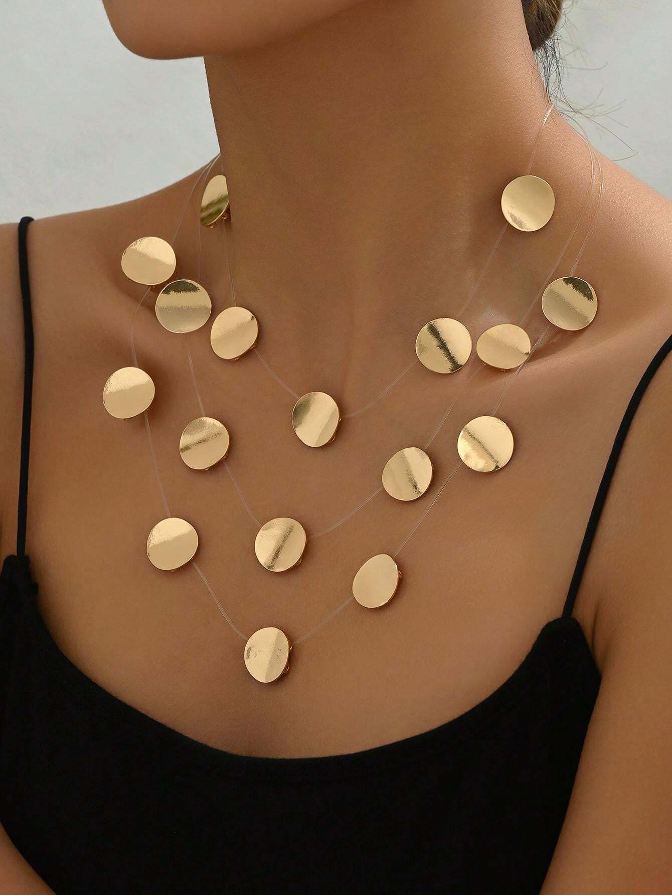 قلادة ذهبية أنيقة متعددة الطبقات هندسية بسيطة غير مرئية من المعدن، قطعة واحدة، مناسبة للحفلات والعطلات