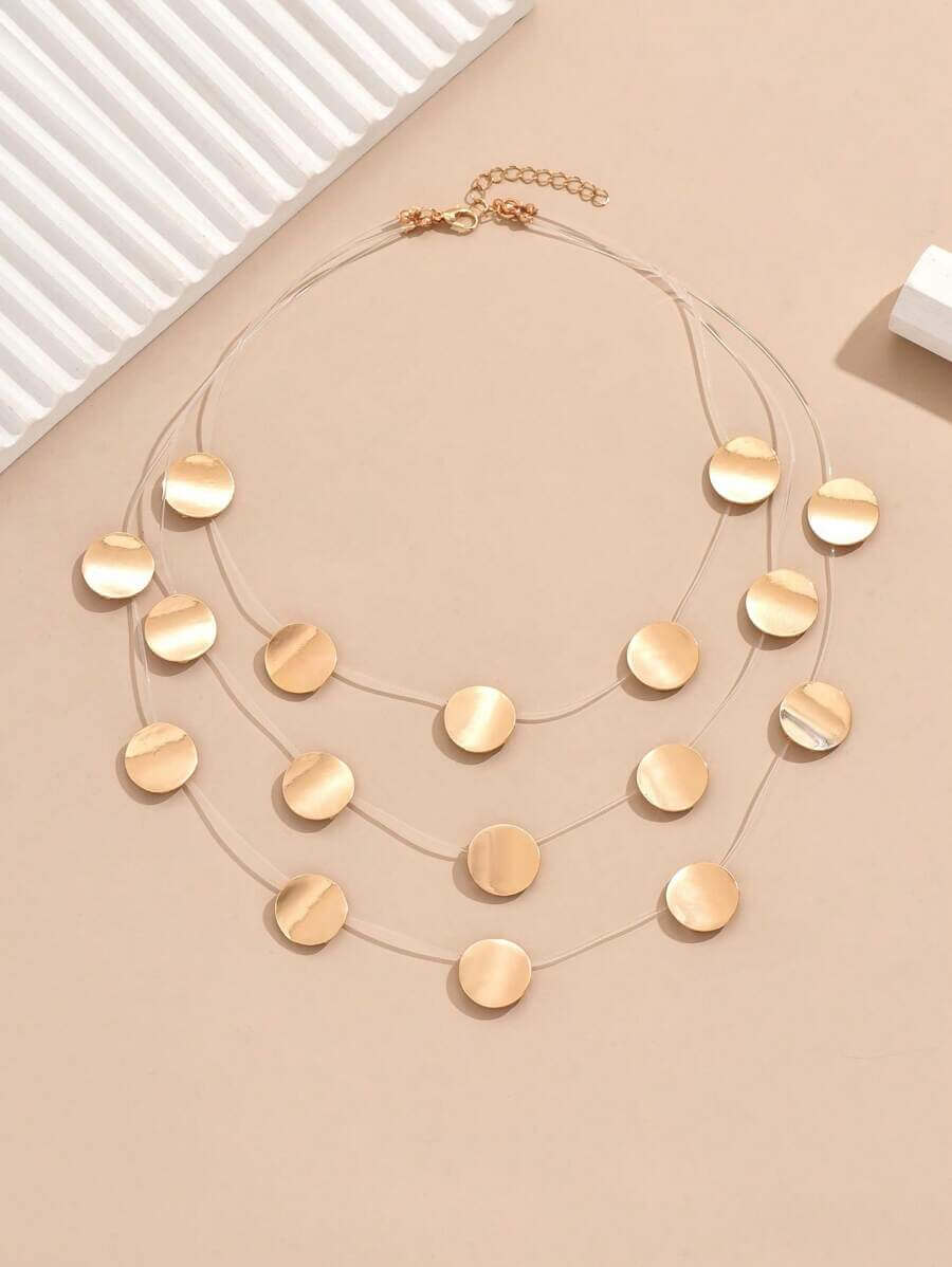 قلادة ذهبية أنيقة متعددة الطبقات هندسية بسيطة غير مرئية من المعدن