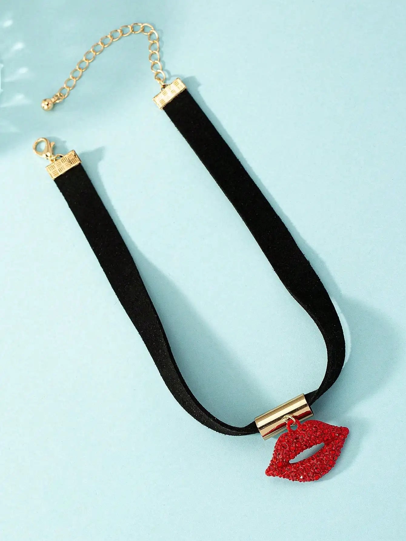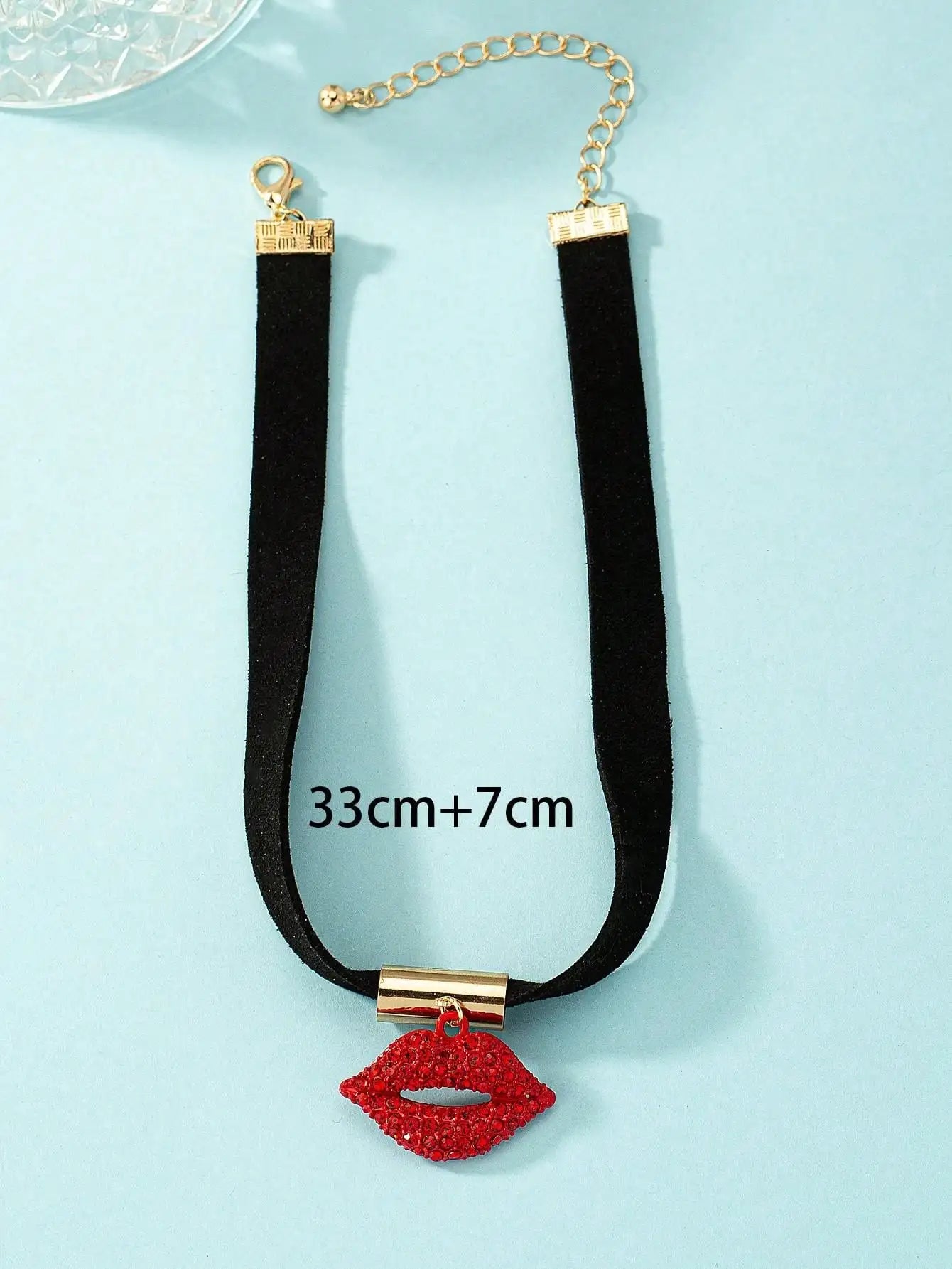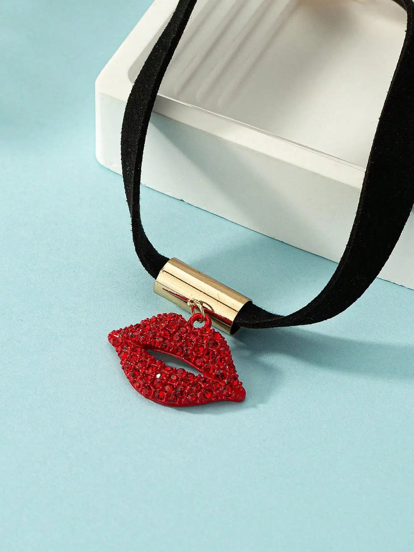 قلادة عصرية متعددة الألوان على شكل حرف V ، قلادة شفاه مرصعة بأحجار الراين