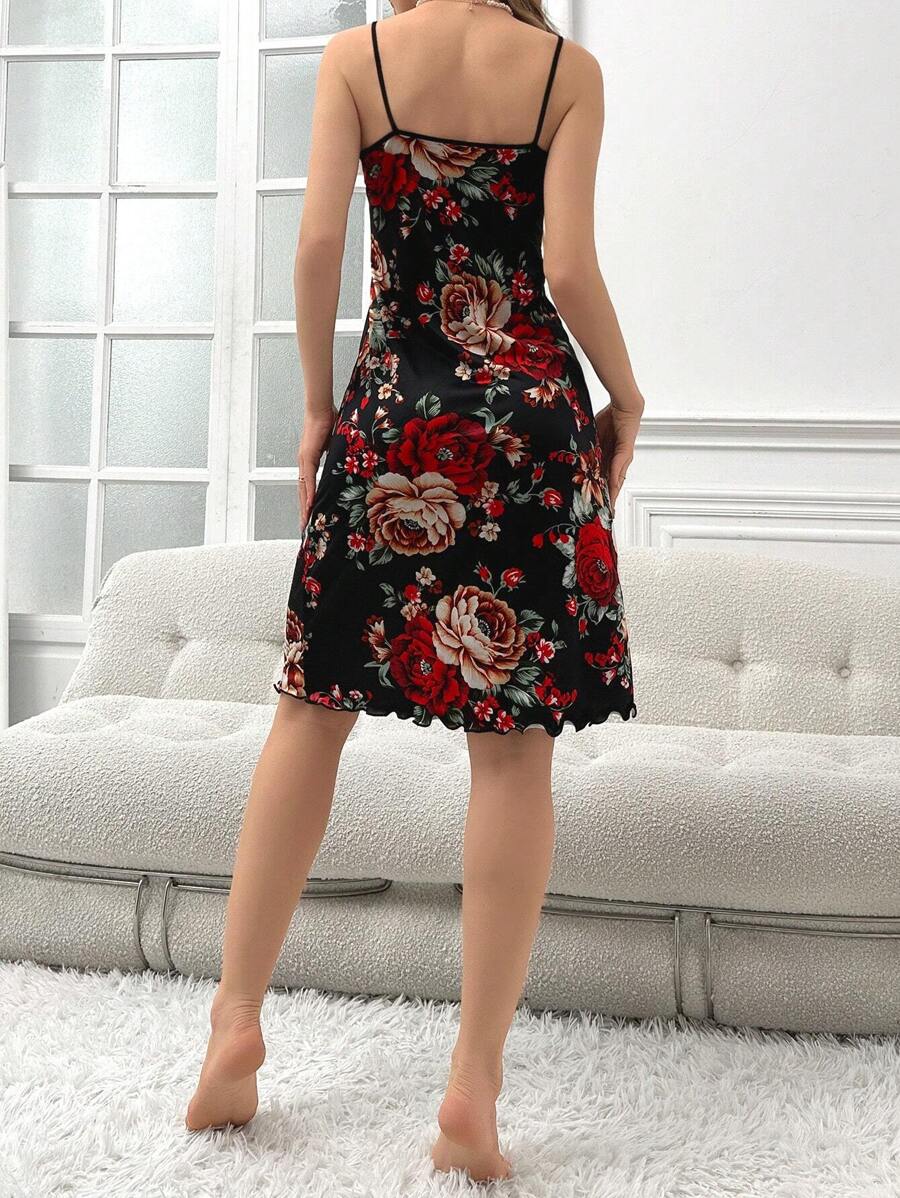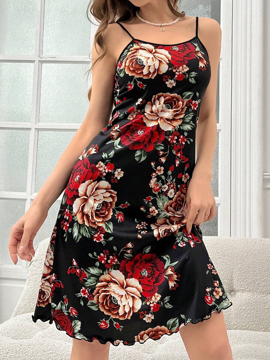 قميص نوم نسائي مطبوع عليه زهور بأشرطة رفيعة، مناسب للارتداء كملابس النوم بيبي دولShein