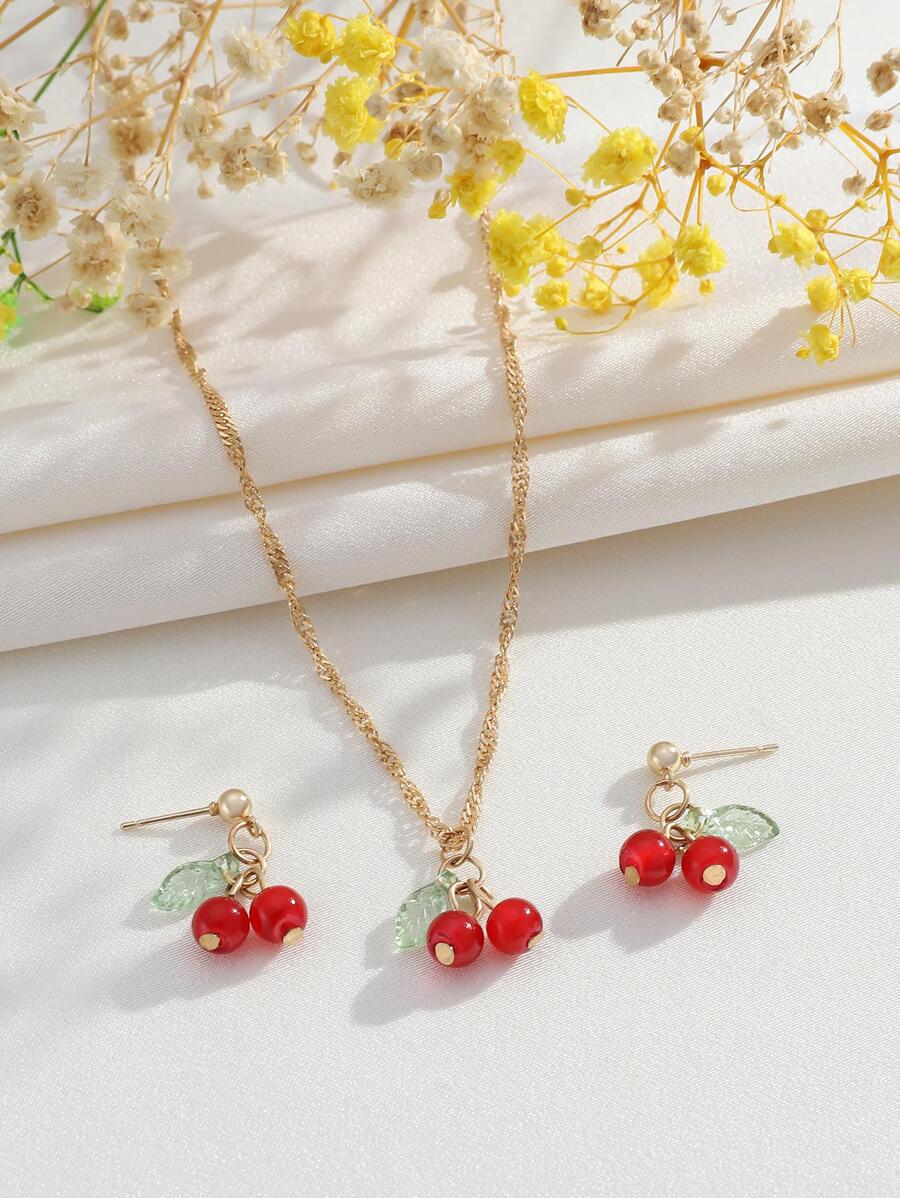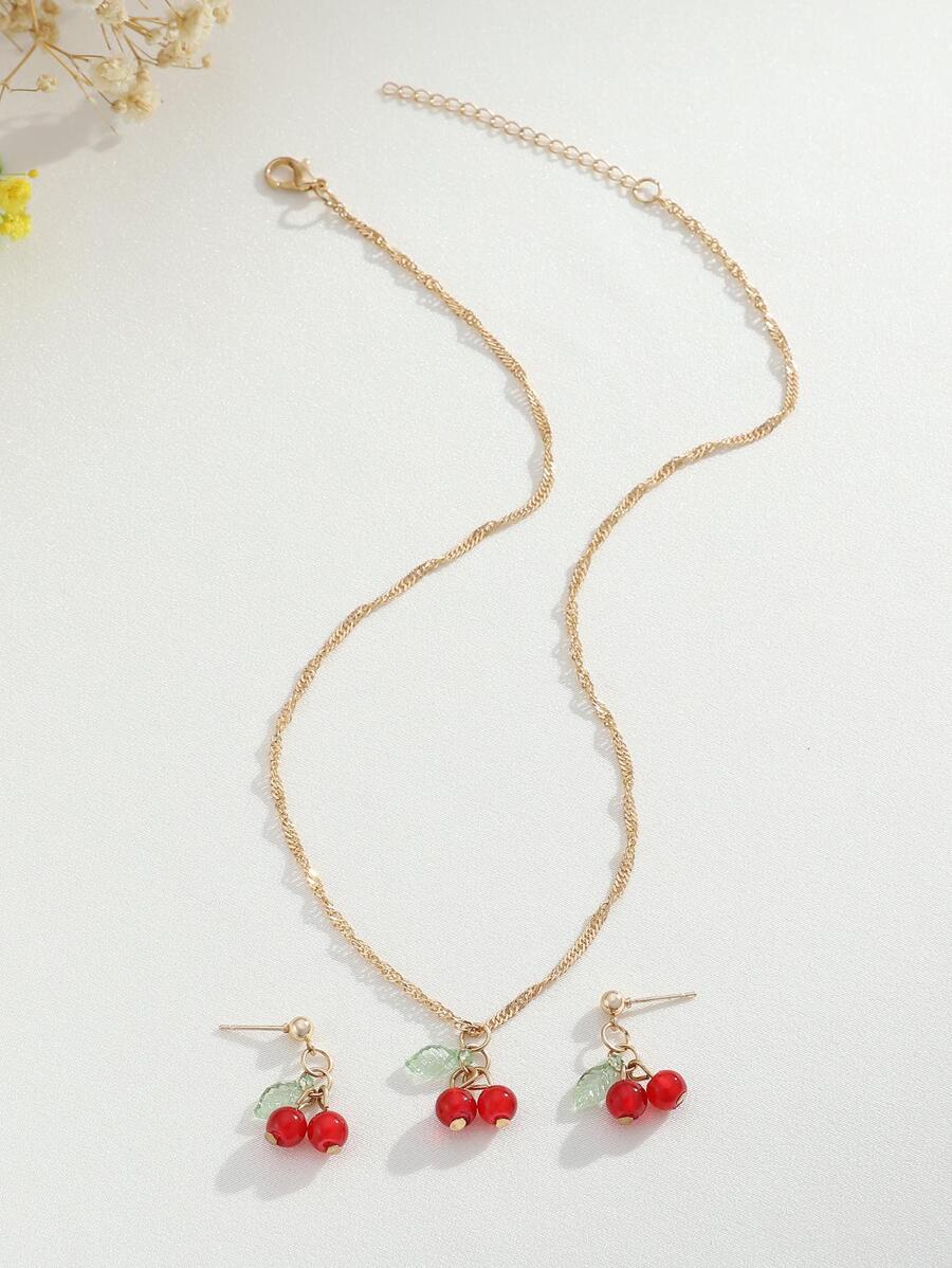 مجموعة من 3 قطع من قلادة وأقراط الكرز متعددة الاستخدامات، مجموعة مجوهرات فواكه عصرية وبسيطة للنساء،
