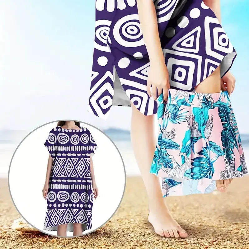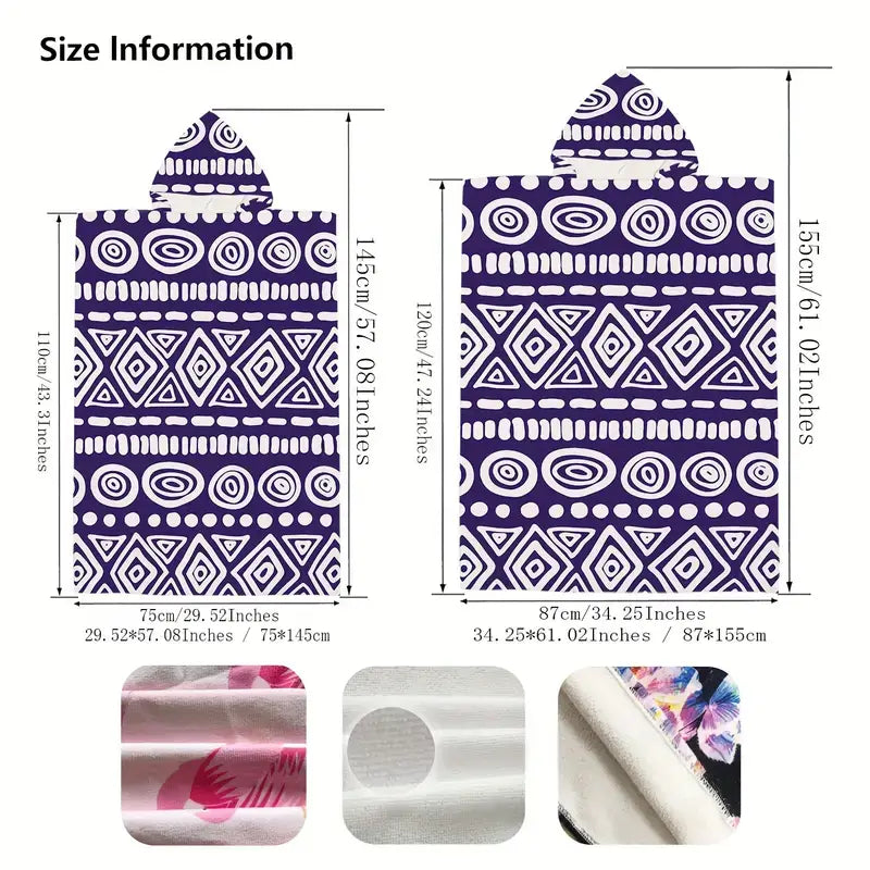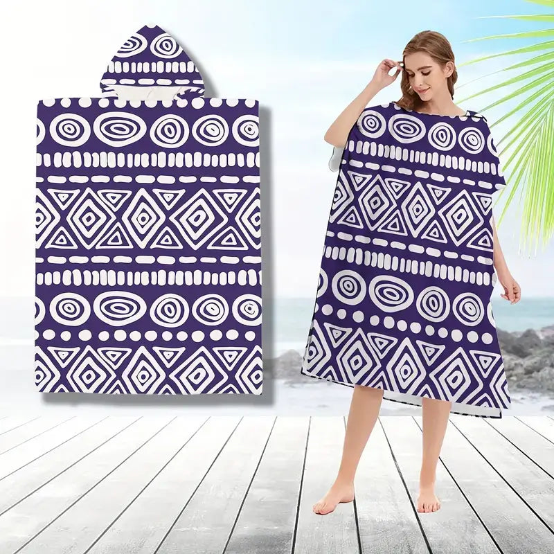 منشفة شاطئ بغطاء للكبار، منشفة استبدال للحمام، رداء مطر، بطانية مناسبة لركوب الأمواج والسباحة على الشاطئ
