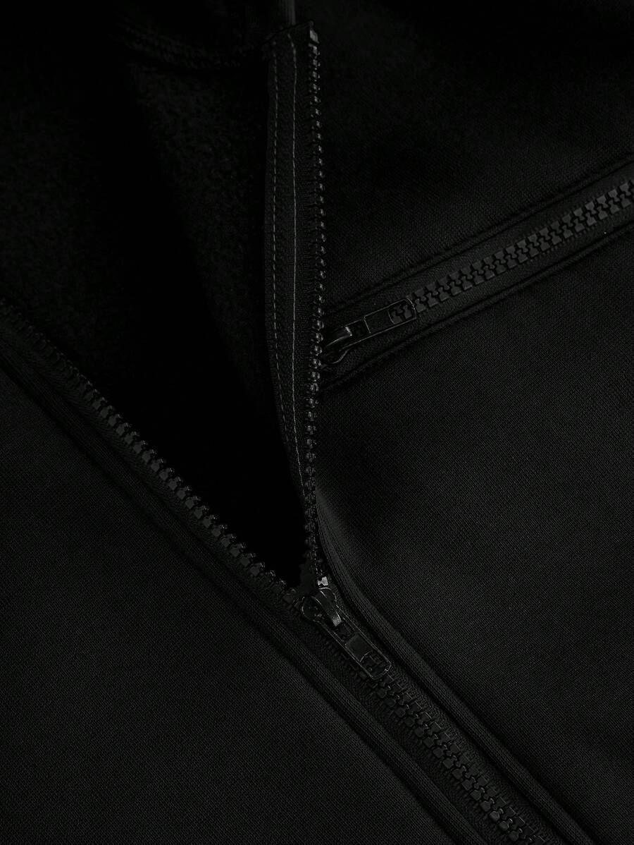 هودي رجالي كاجوال بأكمام طويلة وسحاب أمامي بلون سادة من Manfinity Homme، مناسب للخريف