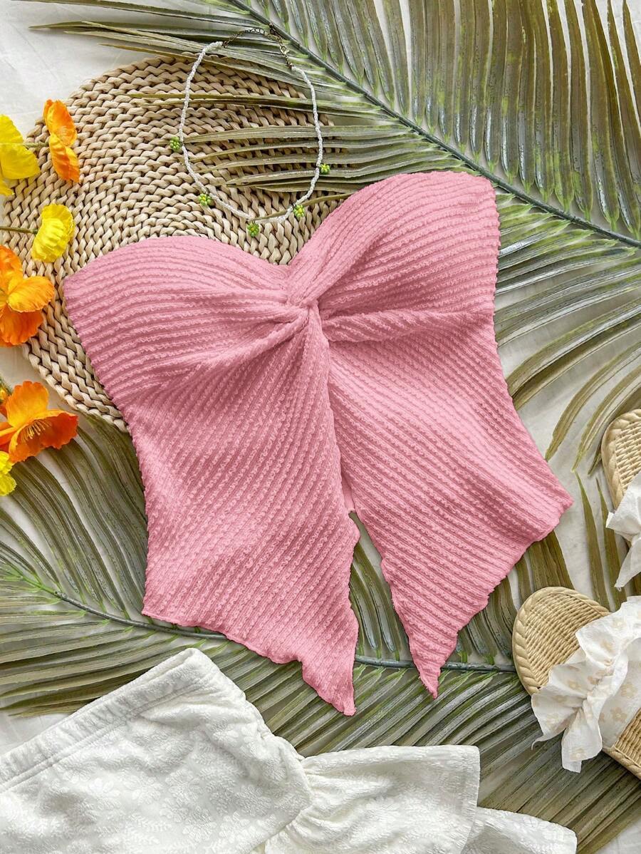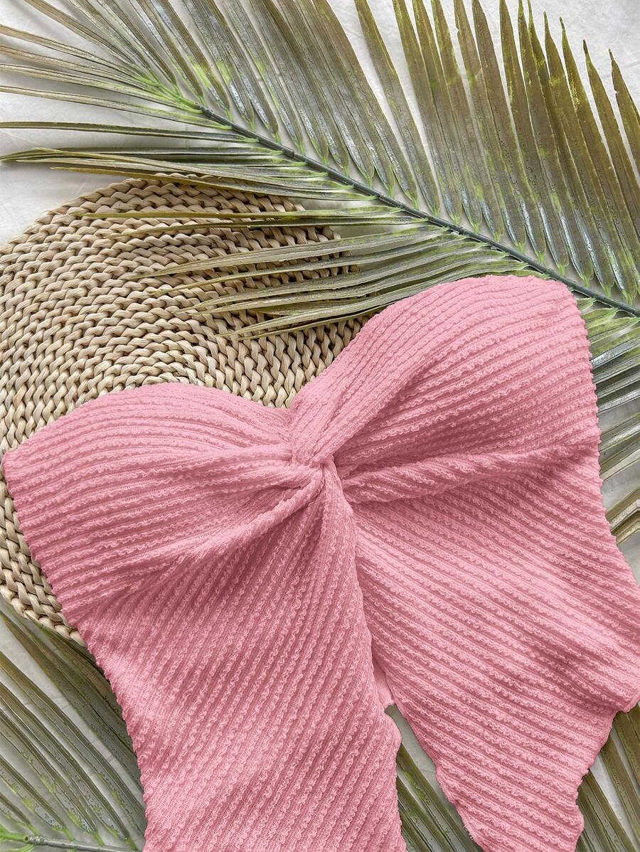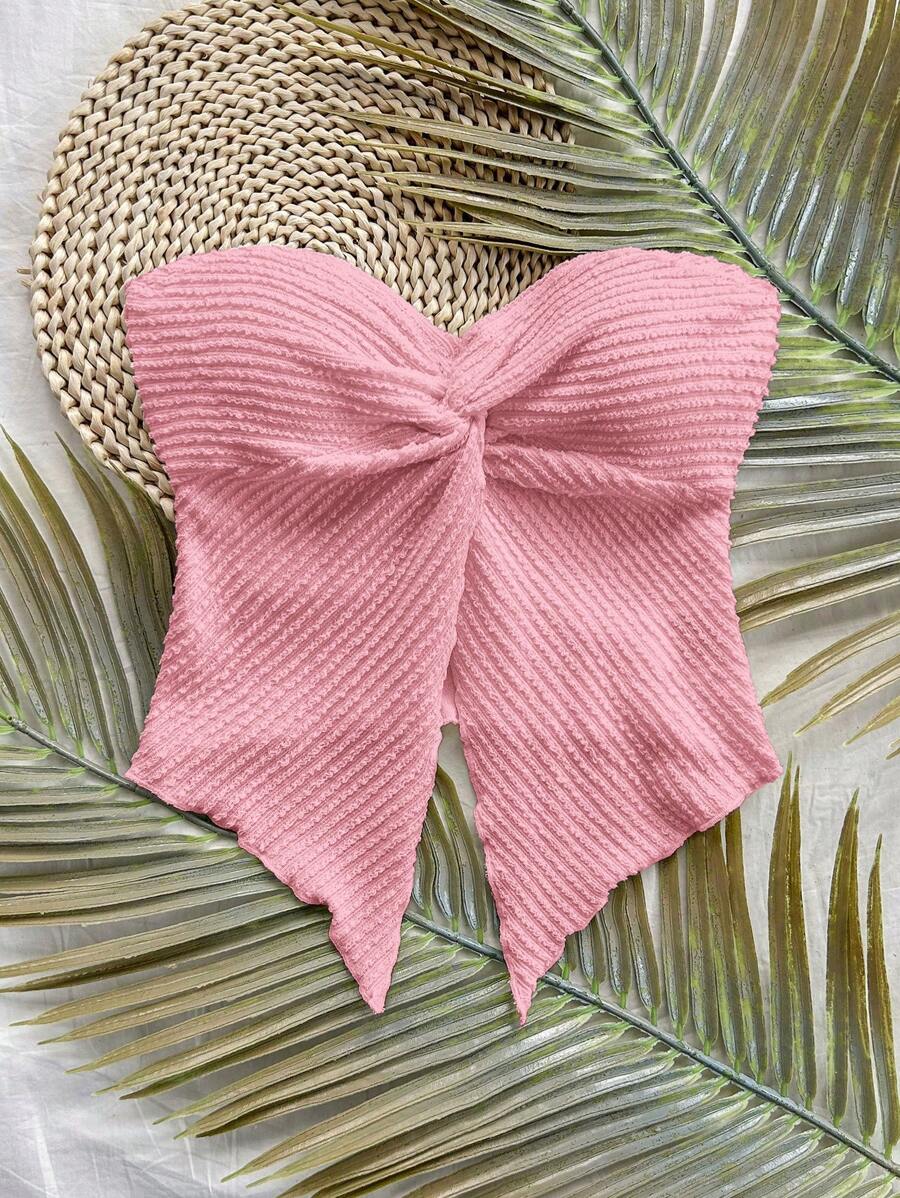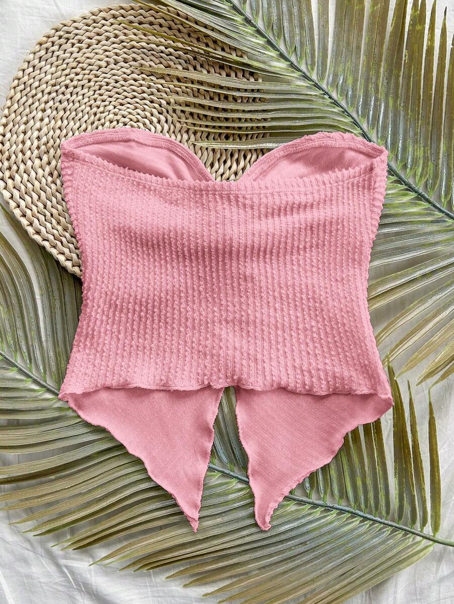 وب نسائي وردي محبوك بدون أكمام بتفصيل ملتف وحافة غير متناظرة