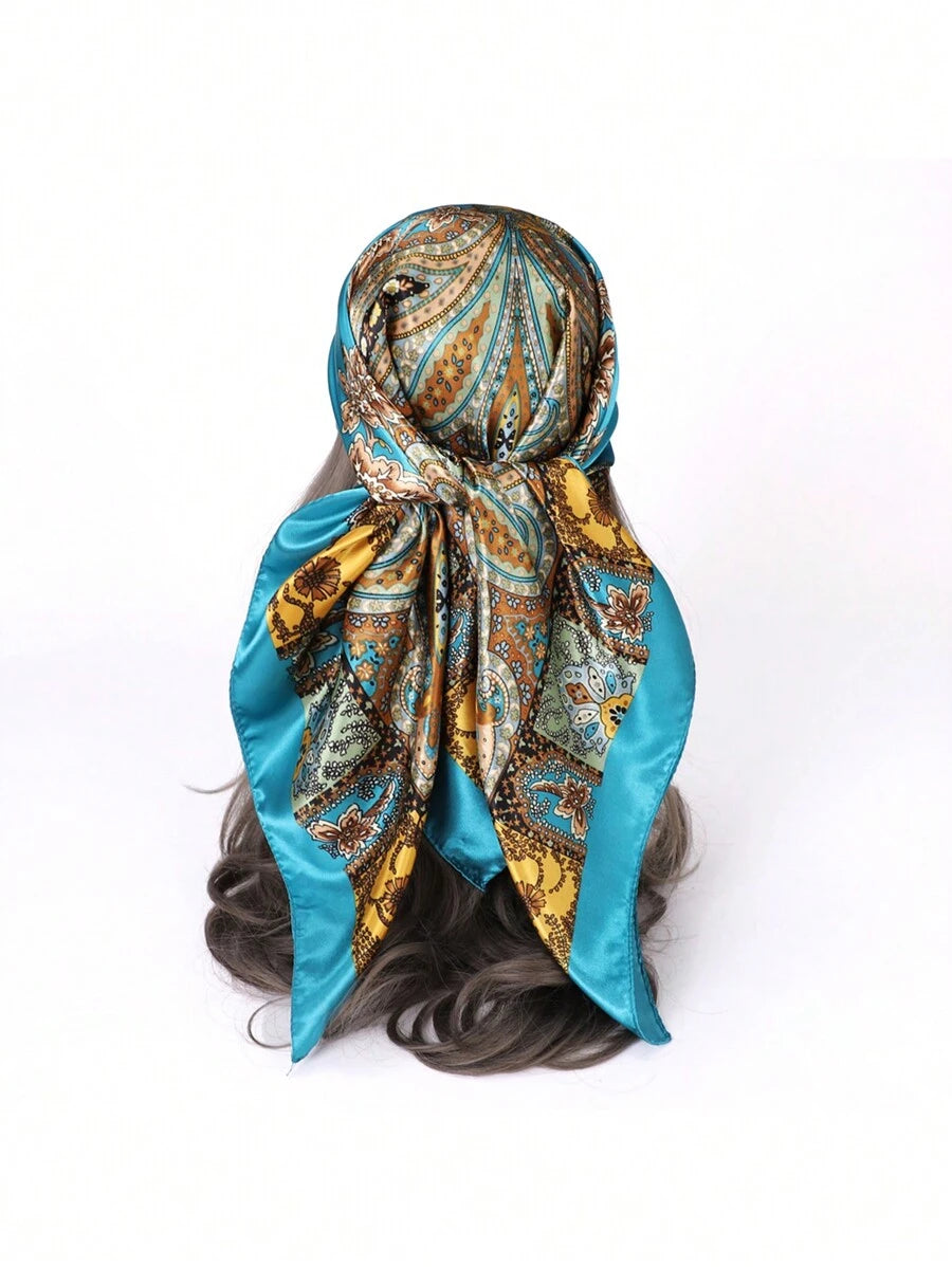 وشاح رأس نسائي مربع من الساتان – بطبعة البايزلي