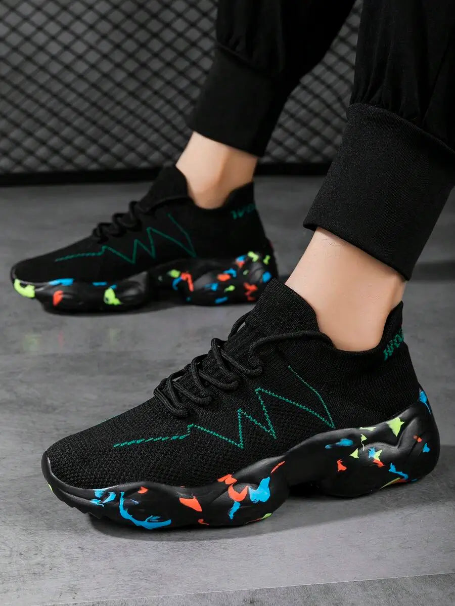 الحذاء ده تصميمه عملي وعصري في نفس الوقت 👟، مصنوع من خامة مريحة جدًا وخفيفة على الرجل، مناسب للمشاوير اليومية أو التمرين. اللون الأسود الأنيق مع لمسات الألوان في النعل مديله طابع شبابي ومميز يخليك تبان ستايلش في أي مكان. تصميم السوك يحافظ على راحة القدم طول اليوم ومش بيضايق حتى بعد لبسه فترات طويلة.