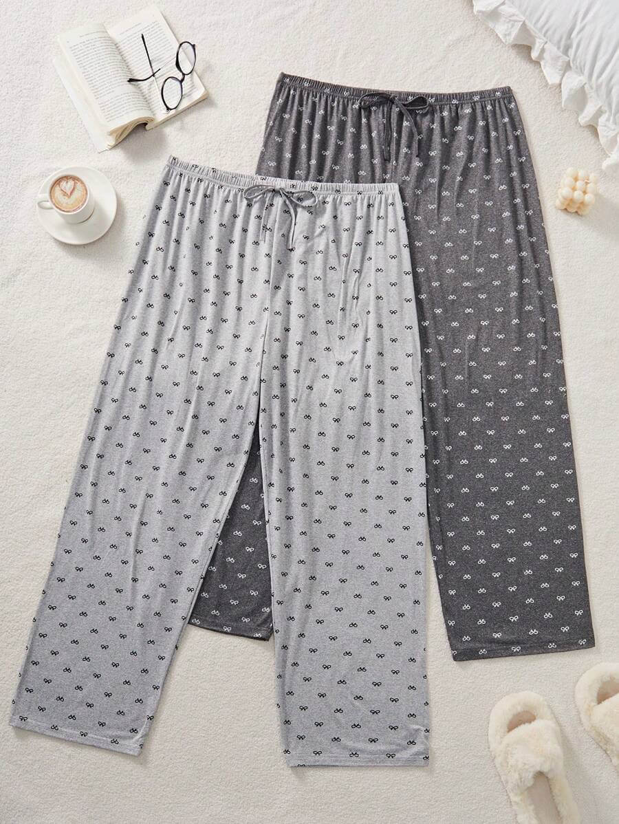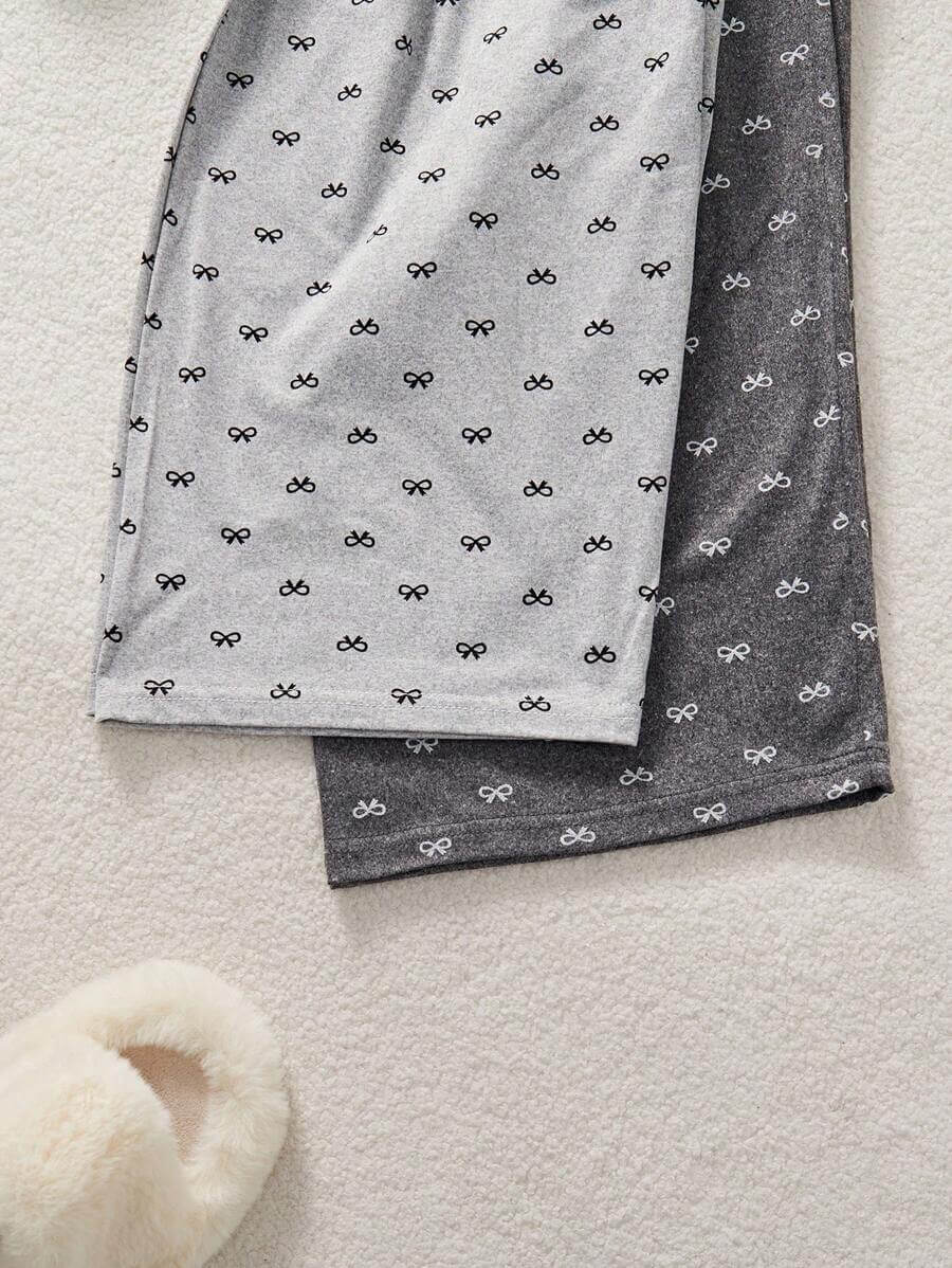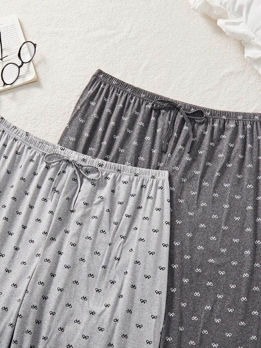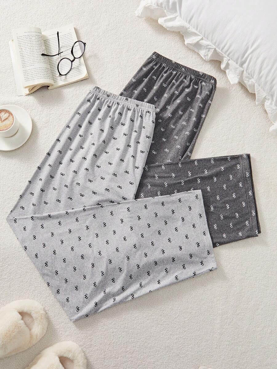 2بنطال طويل مريح بطبعة فيونكة محبوكة