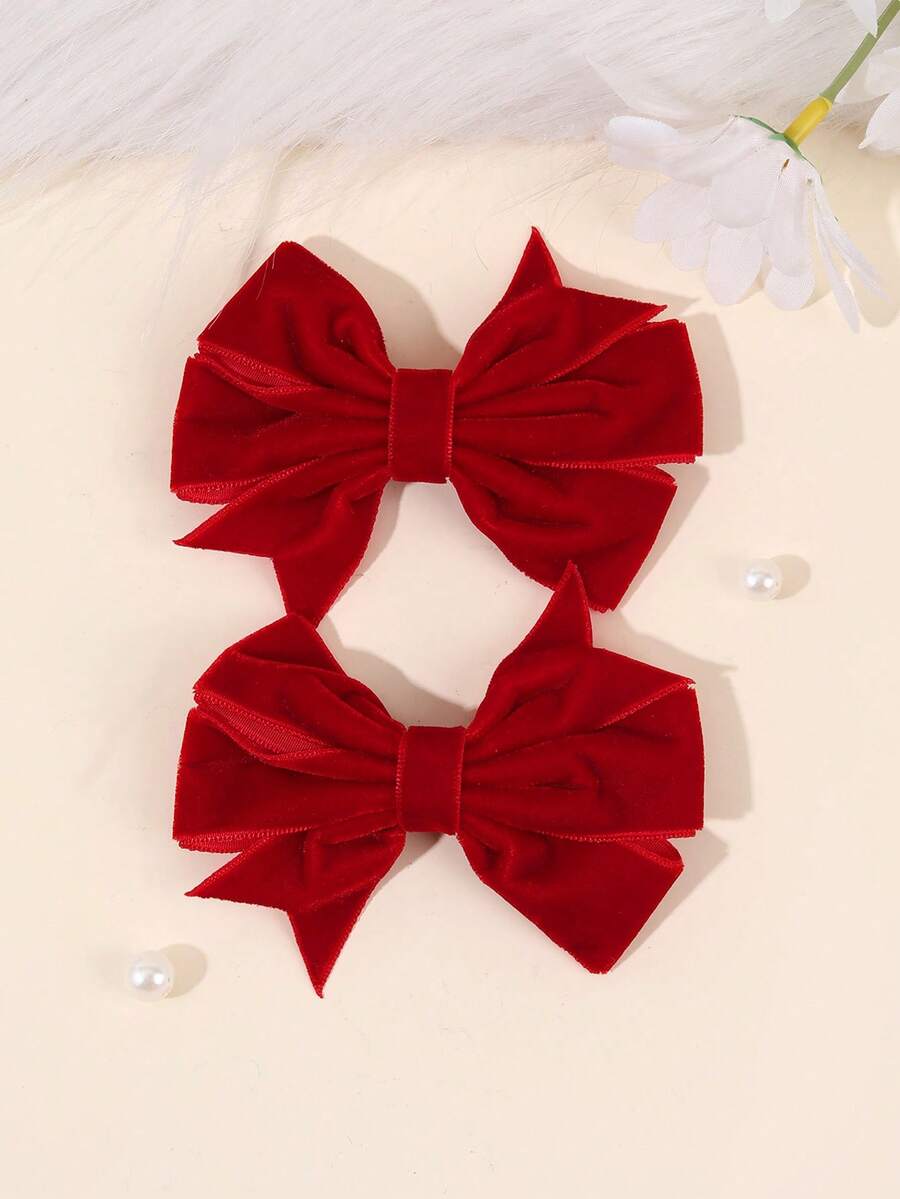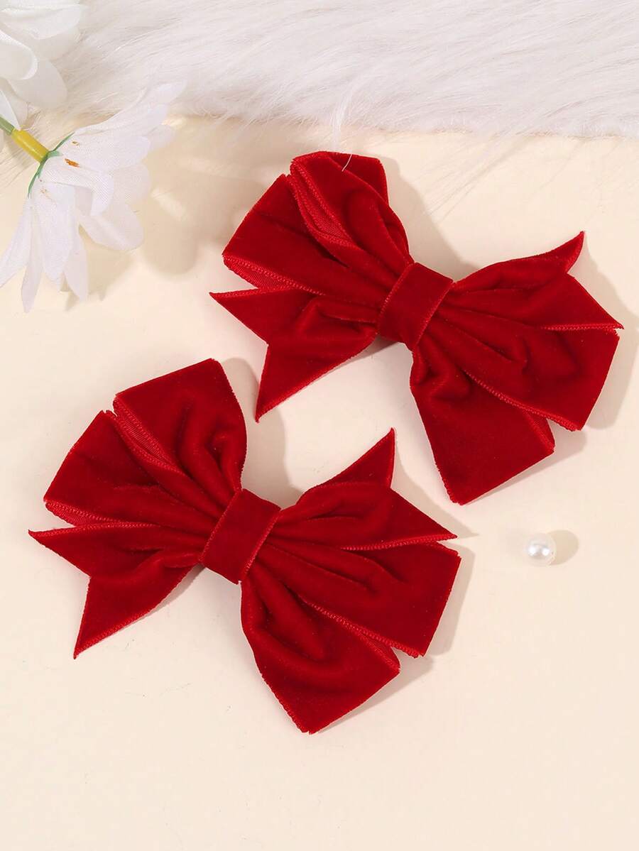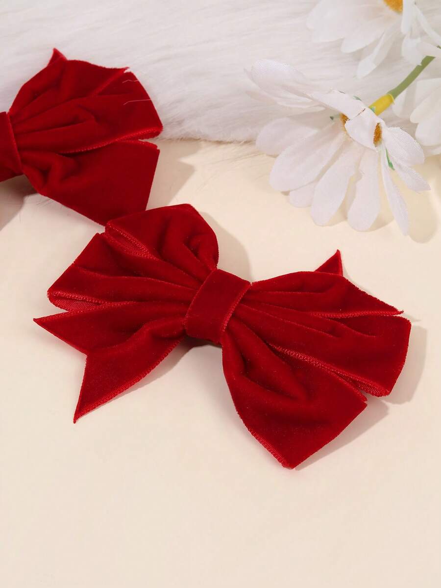 زوج من فيونكات الشعر المصنوعة من القطيفة الفاخرة باللون الأحمر المميز، بتصميم بسيط يضفي لمسة من الأناقة على تسريحة الشعر. القطيفة تمنح ملمسًا ناعمًا ومظهرًا راقيًا، مما يجعلها اختيارًا مثاليًا لإطلالة أنثوية متكاملة سواء في الأيام العادية أو المناسبات الخاصة.