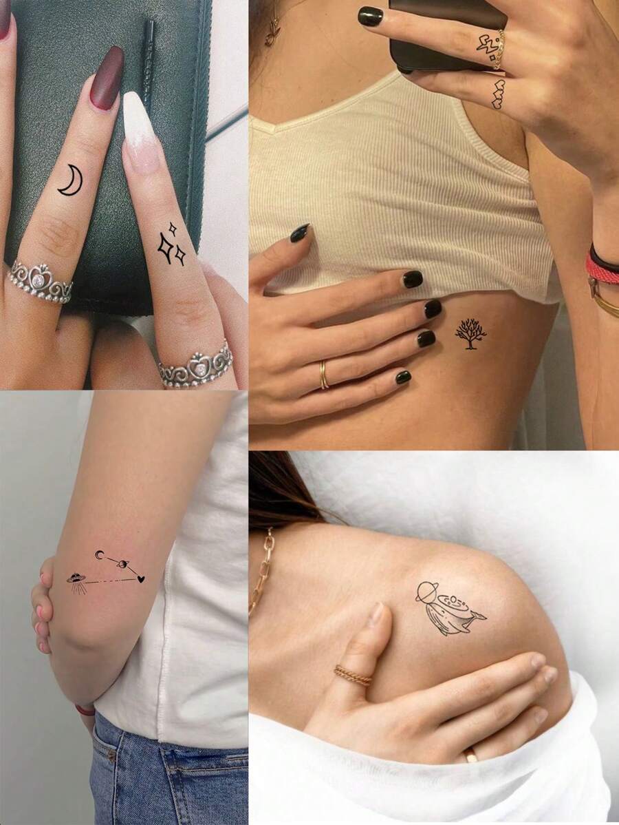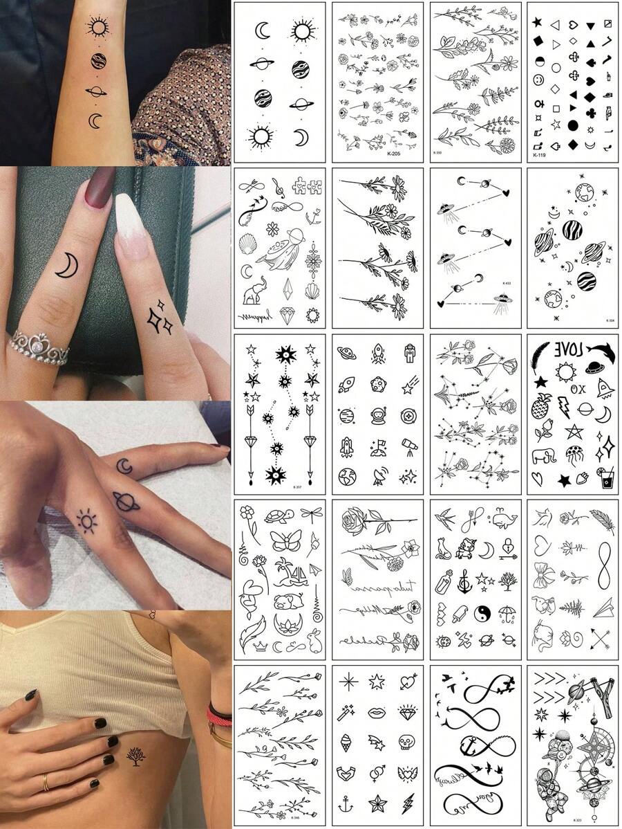 20 ورقة ملصقات وشم مؤقتة بتصميم صغير أسود إبداعي للرجال والنساء Shein