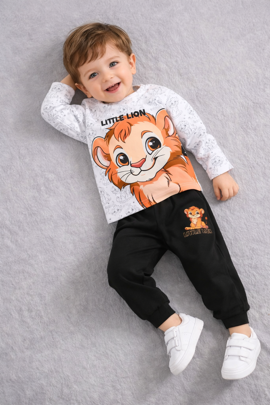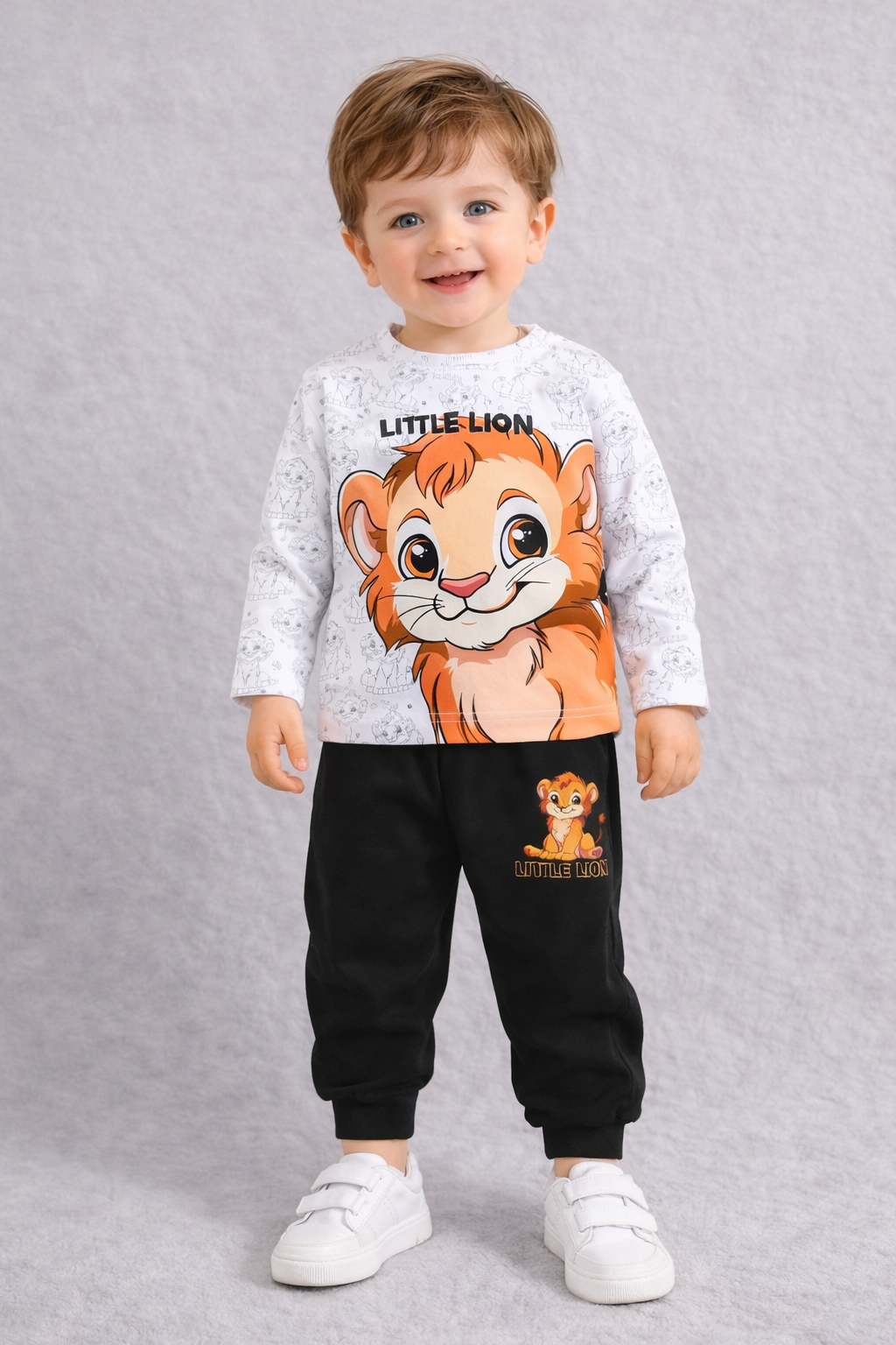 طقم ولادي (قطعتين): سويت شيرت وبنطلون رياضي كاجوال بطبعة أسد