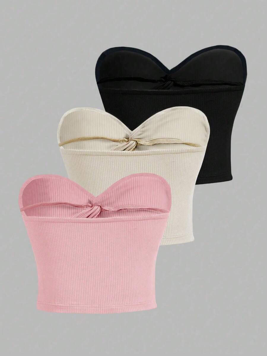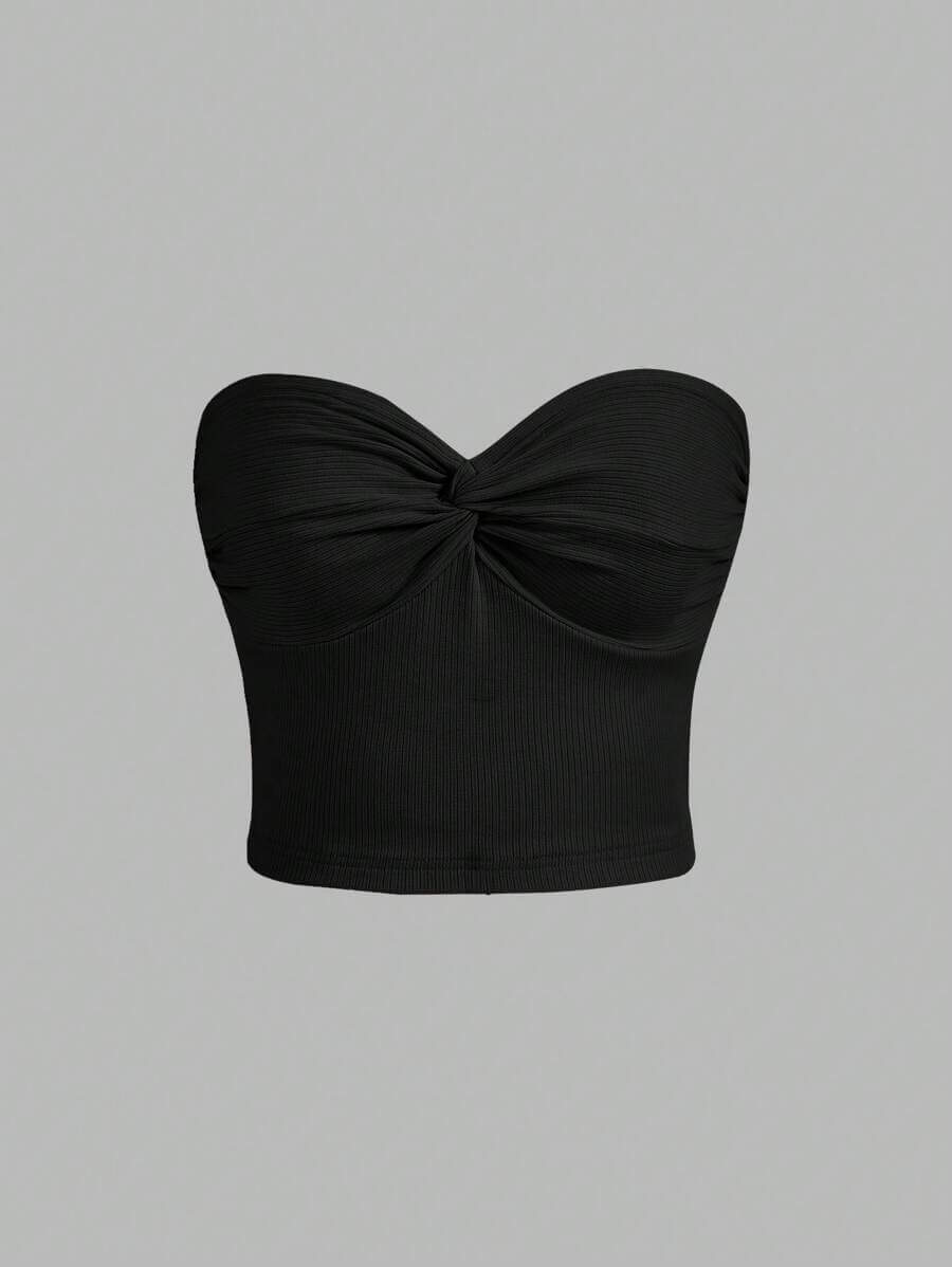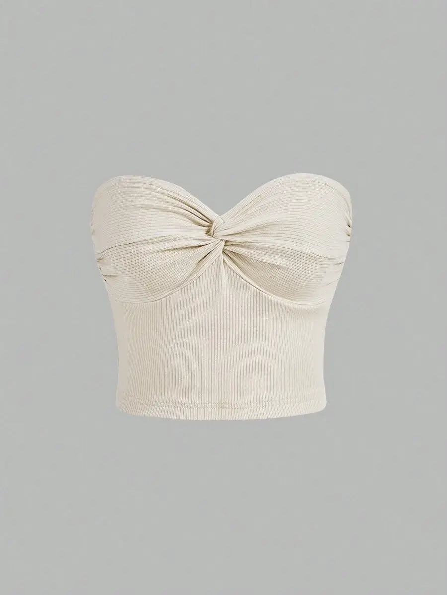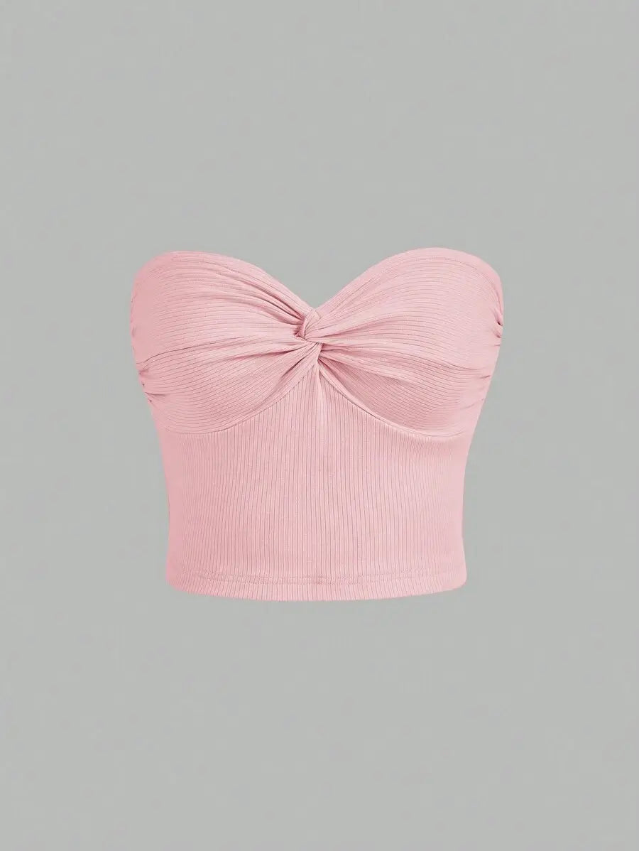 3بلوزة نسائية صيفية كاجوال من Rina Fox بلون سادة بدون حمالات بعقدة ملتوية