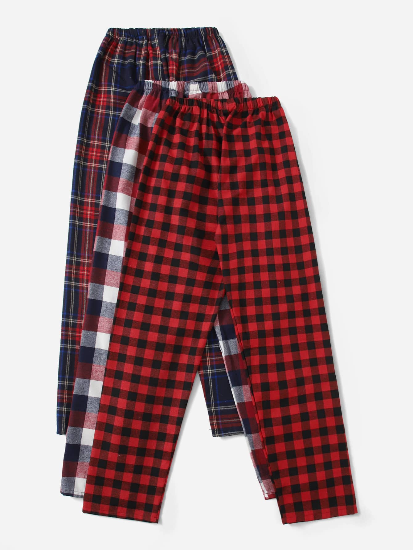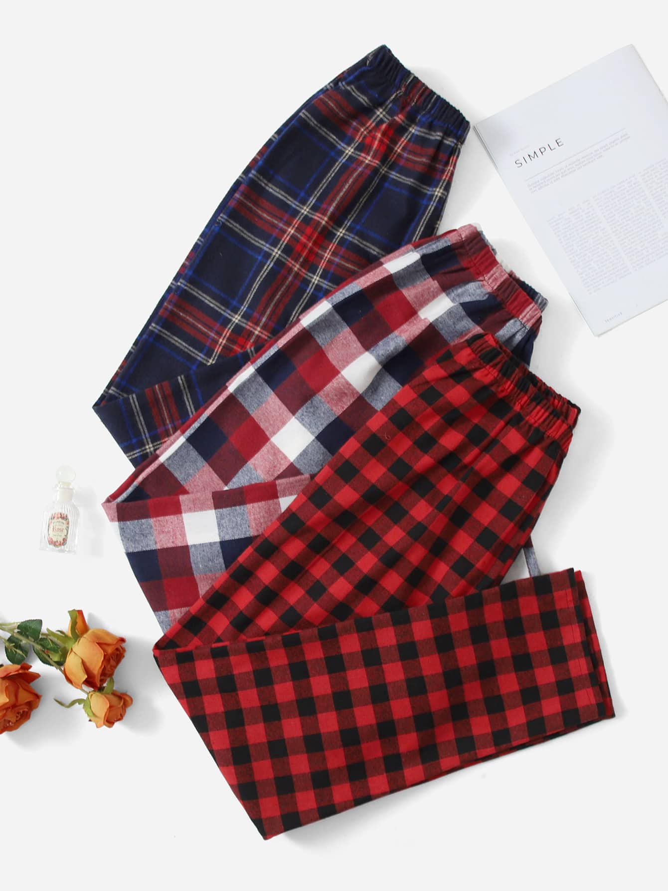 3 قطع من بنطلون النوم بطبعة تارتان ومربعات، ملابس خريفية