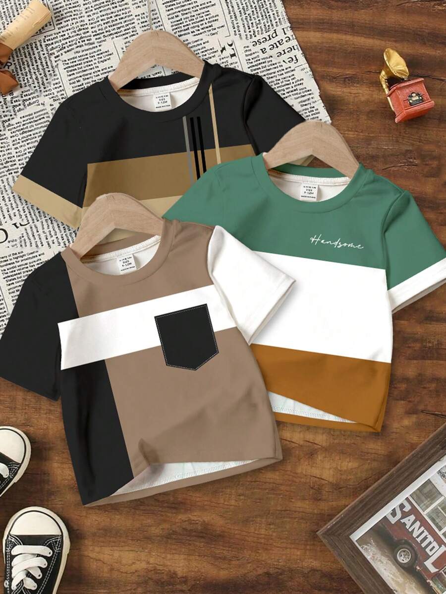مجموعة مكونة من 3 تي شيرتات من SHEIN للأولاد الصغار بتصميم كاجوال عصري مثالي لفصل الصيف. تتميز التي شيرتات بأكمام قصيرة وطبعات هندسية كلاسيكية تضيف لمسة أنيقة ومليئة بالحيوية. مصنوعة من خامة قطنية ناعمة ومريحة توفر راحة طوال اليوم، مما يجعلها خيارًا مثاليًا للارتداء اليومي، أو النزهات، أو اللعب في الأجواء الصيفية الدافئة.