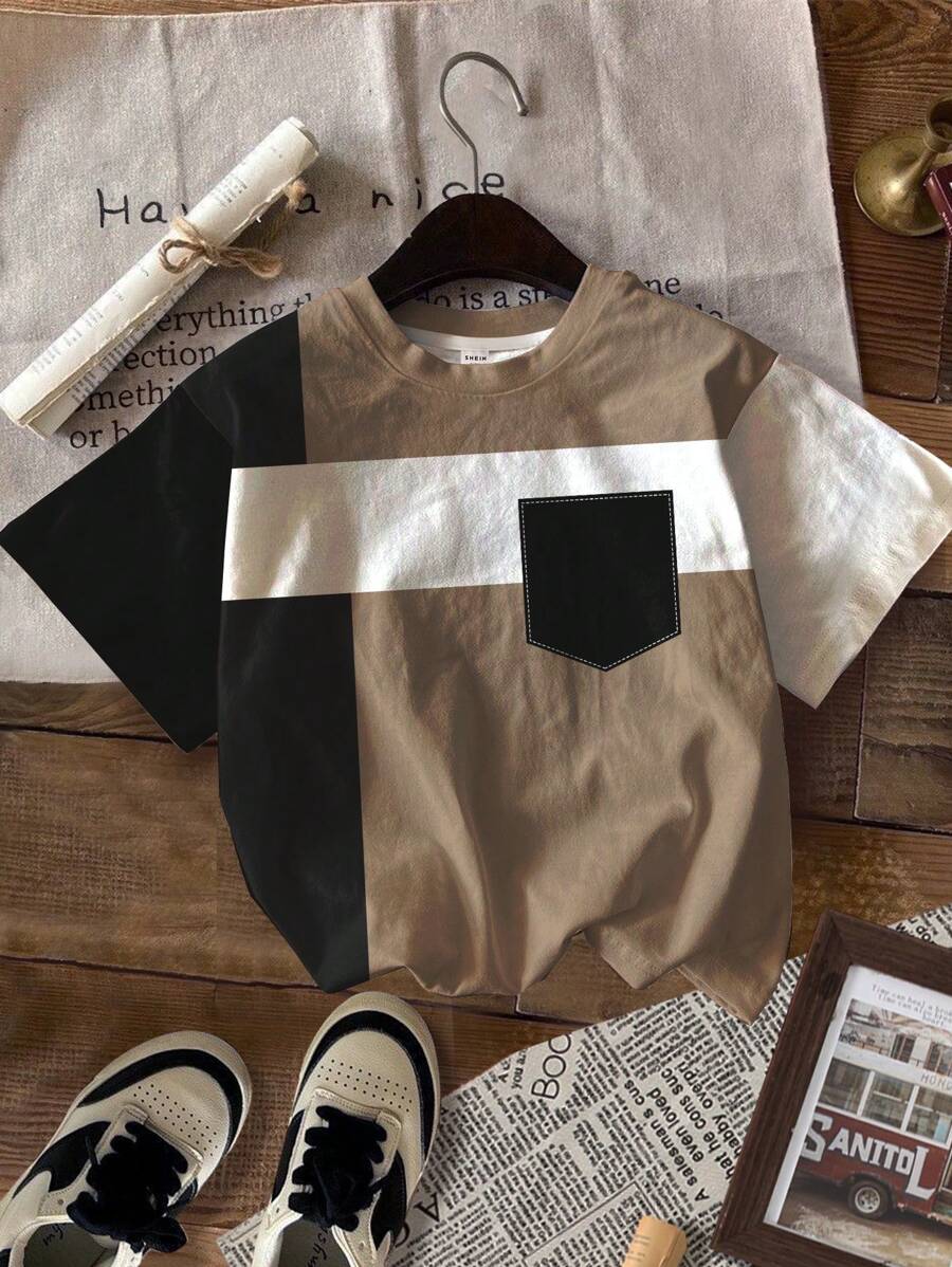مجموعة من 3 قطع من تي شيرتات شي إن للأولاد الصغار بأكمام قصيرة وطبعة هندسية كلاسيكية