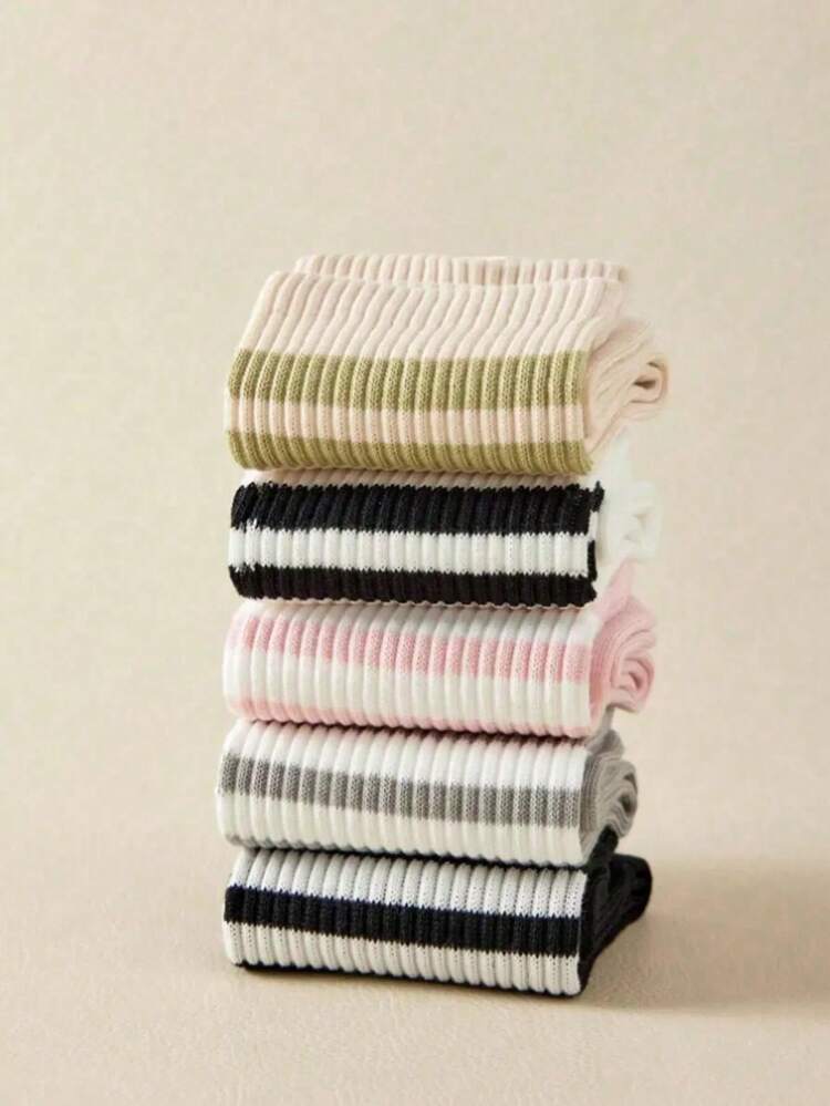 5 أزواج جوارب نسائية رياضية متوسطة الطول – متعددة الألوان