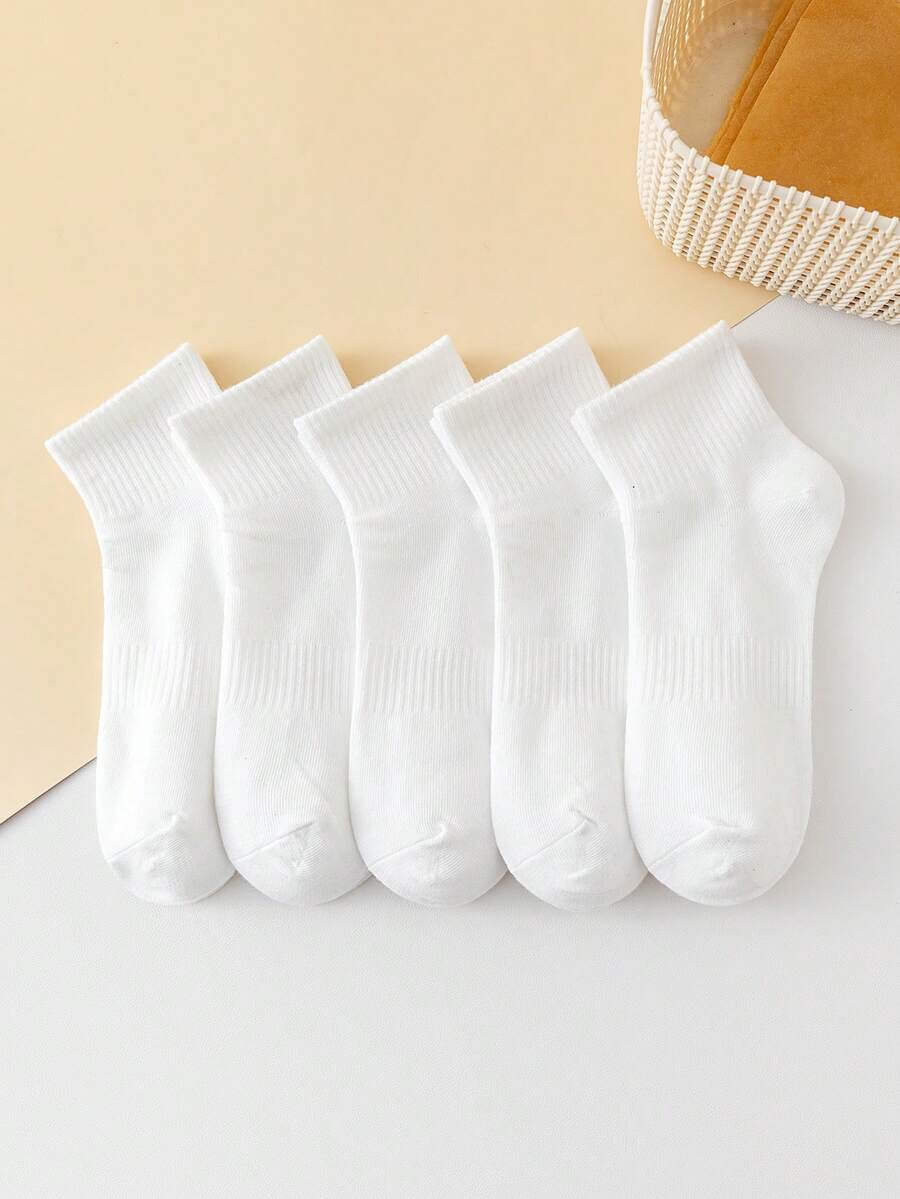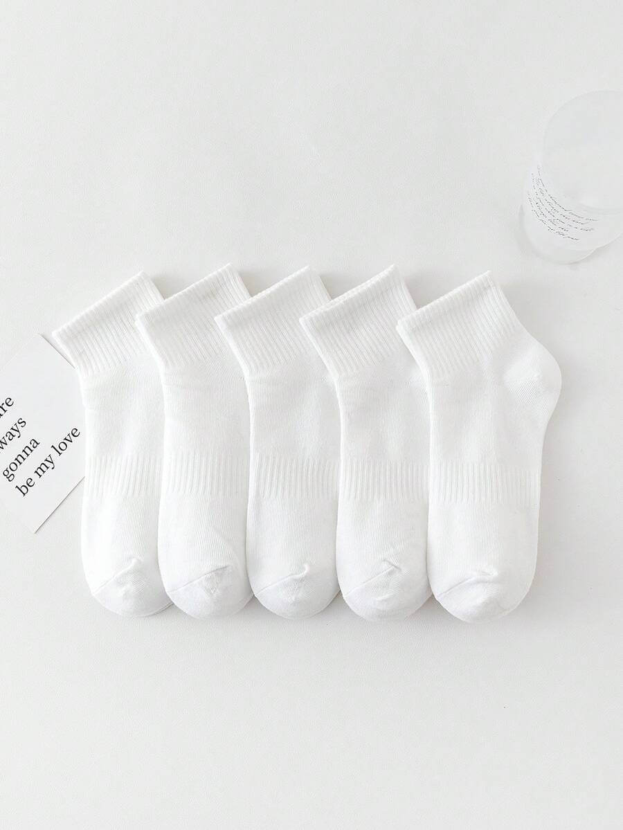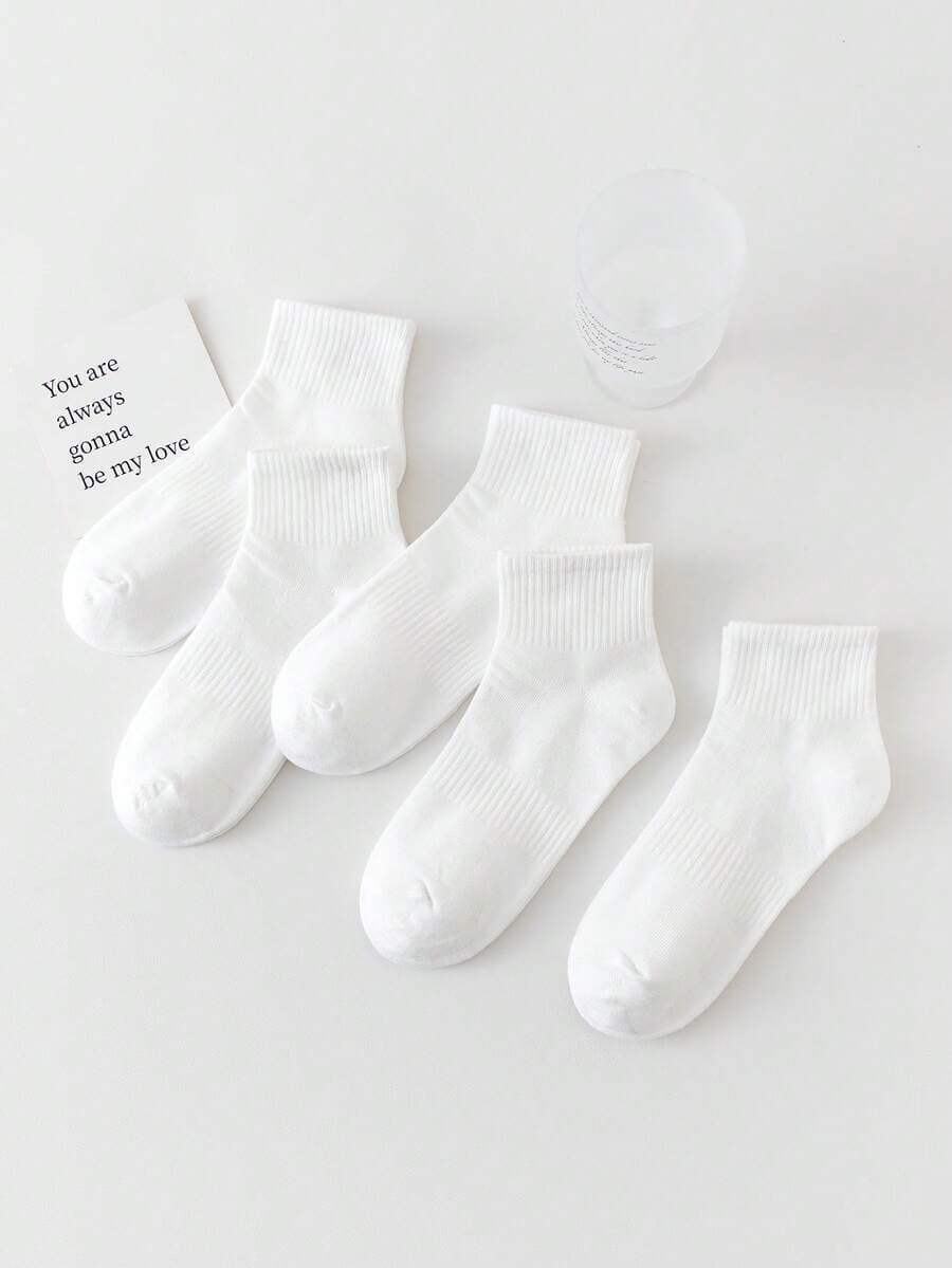 5 أزواج من الجوارب البيضاء، جوارب بلون واحد للنساء