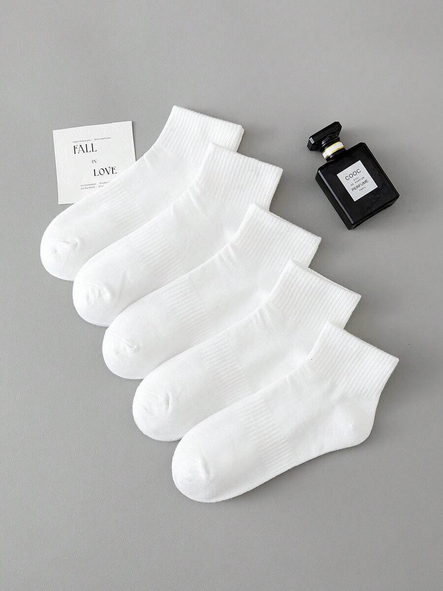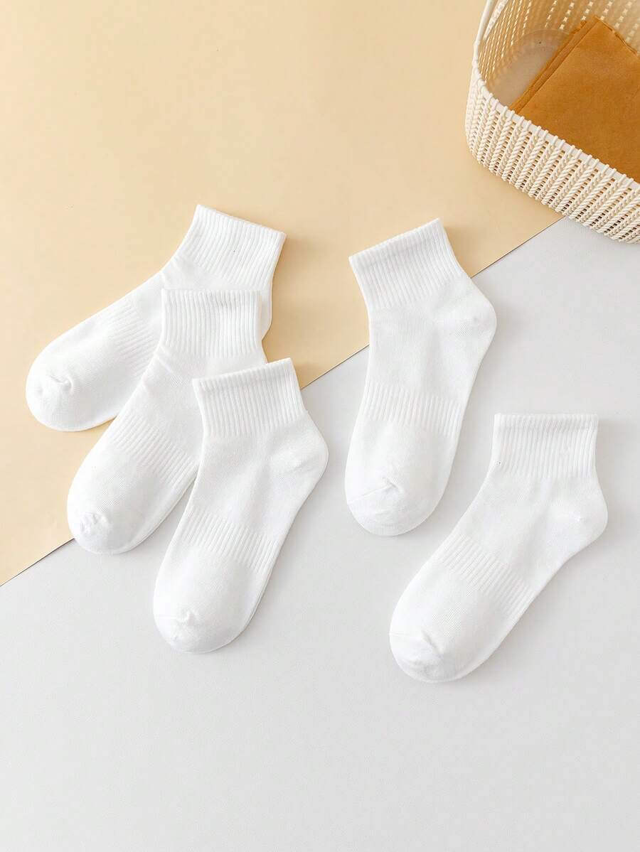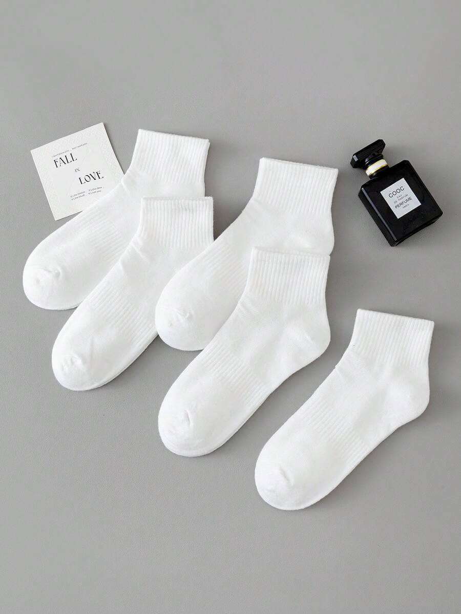 5 أزواج من الجوارب البيضاء، جوارب بلون واحد للنساء