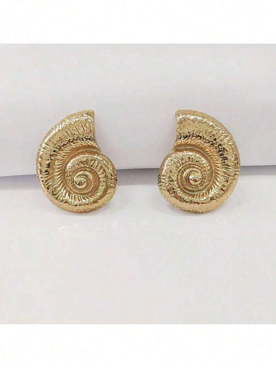 زوج أقراط معدنية بشكل صدفة – أسلوب عصري لمظهر ساحلي