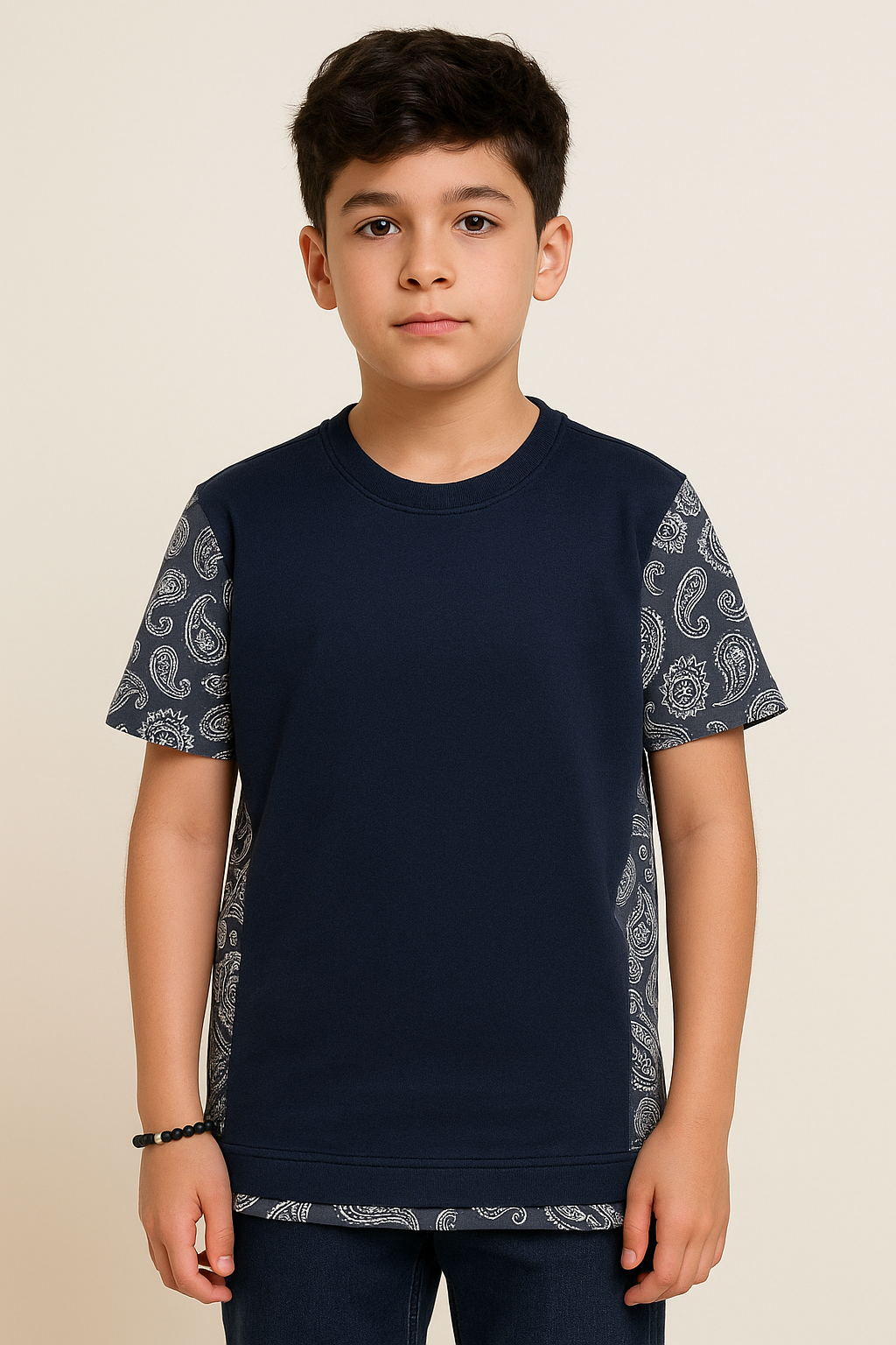 تيشيرت كاجوال باللون الكحلي مع تفاصيل برسومات الباندانا