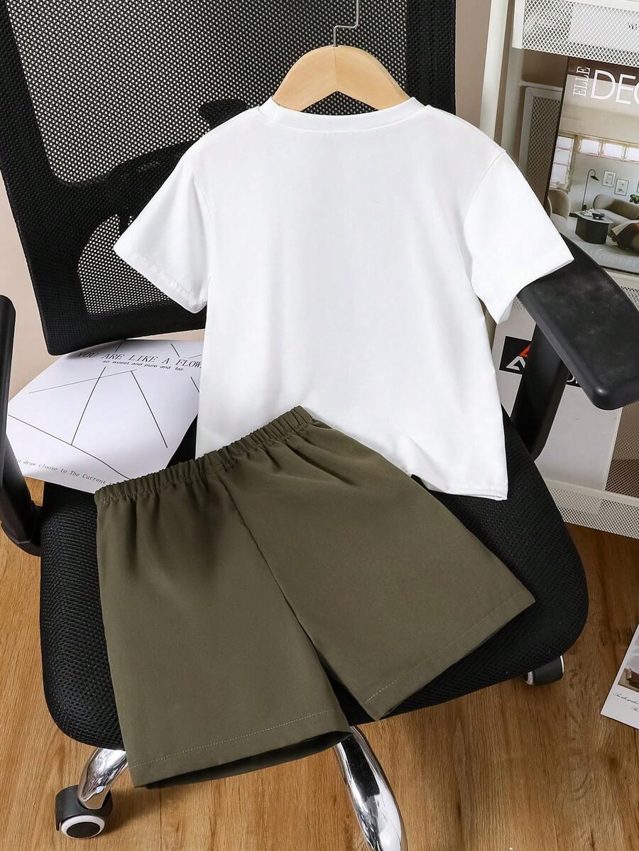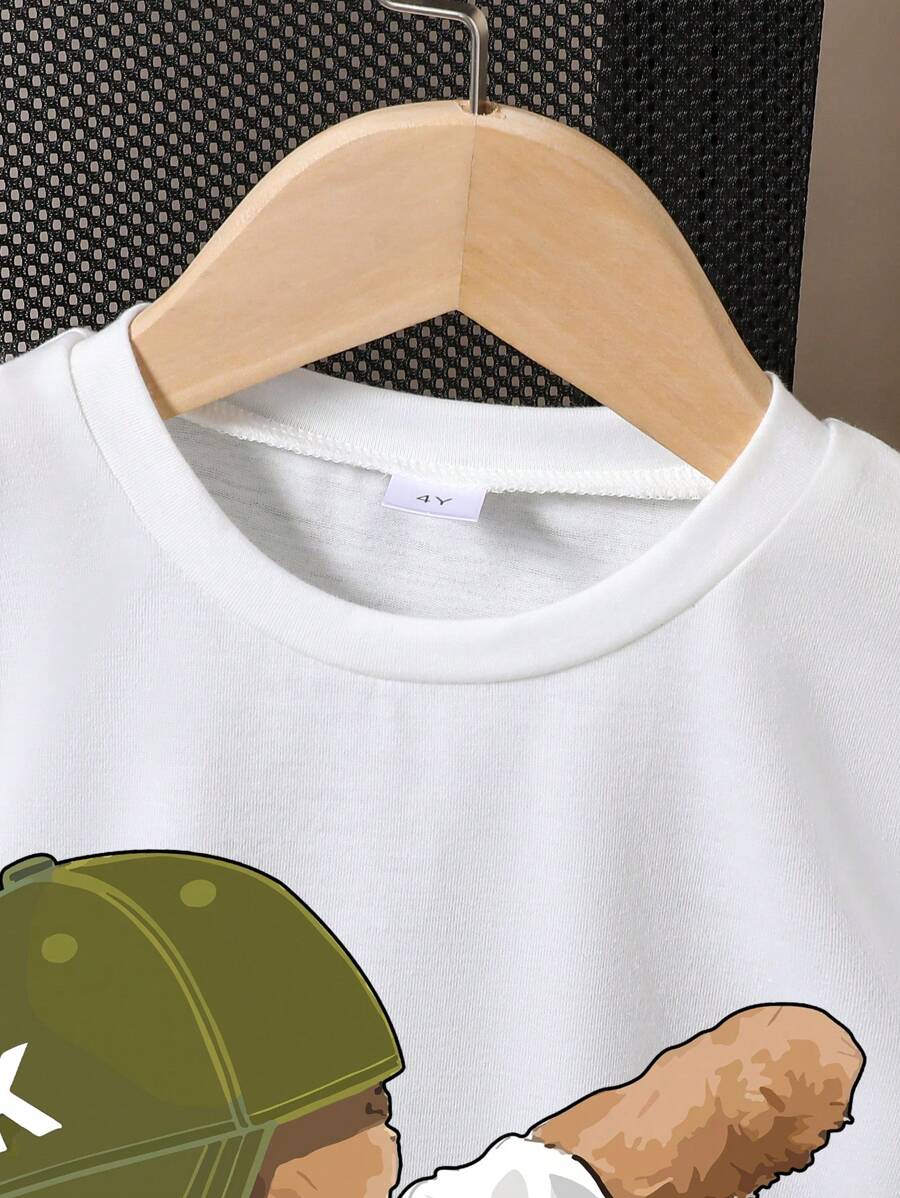 طقم ولادي 2 قطع: تي-شيرت بأكمام قصيرة بطبعة دب + شورت – إطلالة كاجوال صيفية