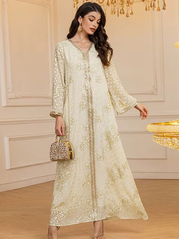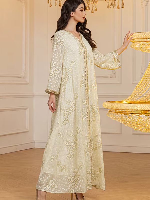 عباية كريمية مطرزة بتفاصيل ذهبية من Shein