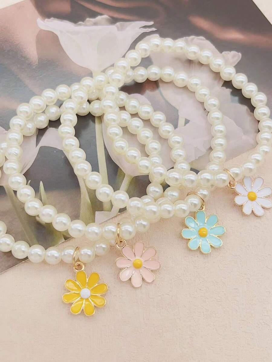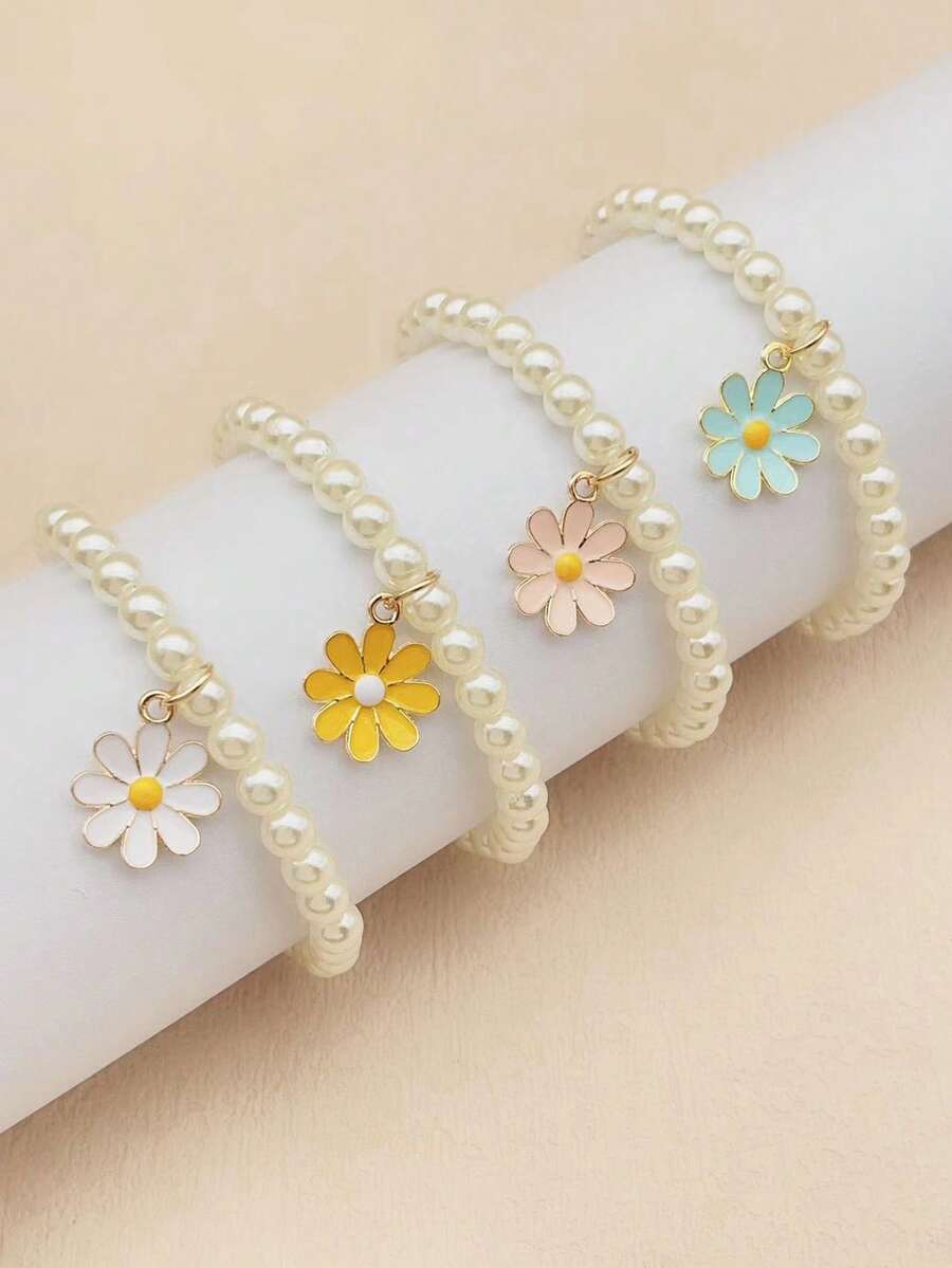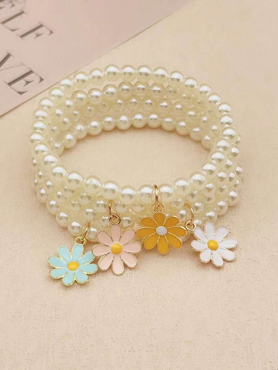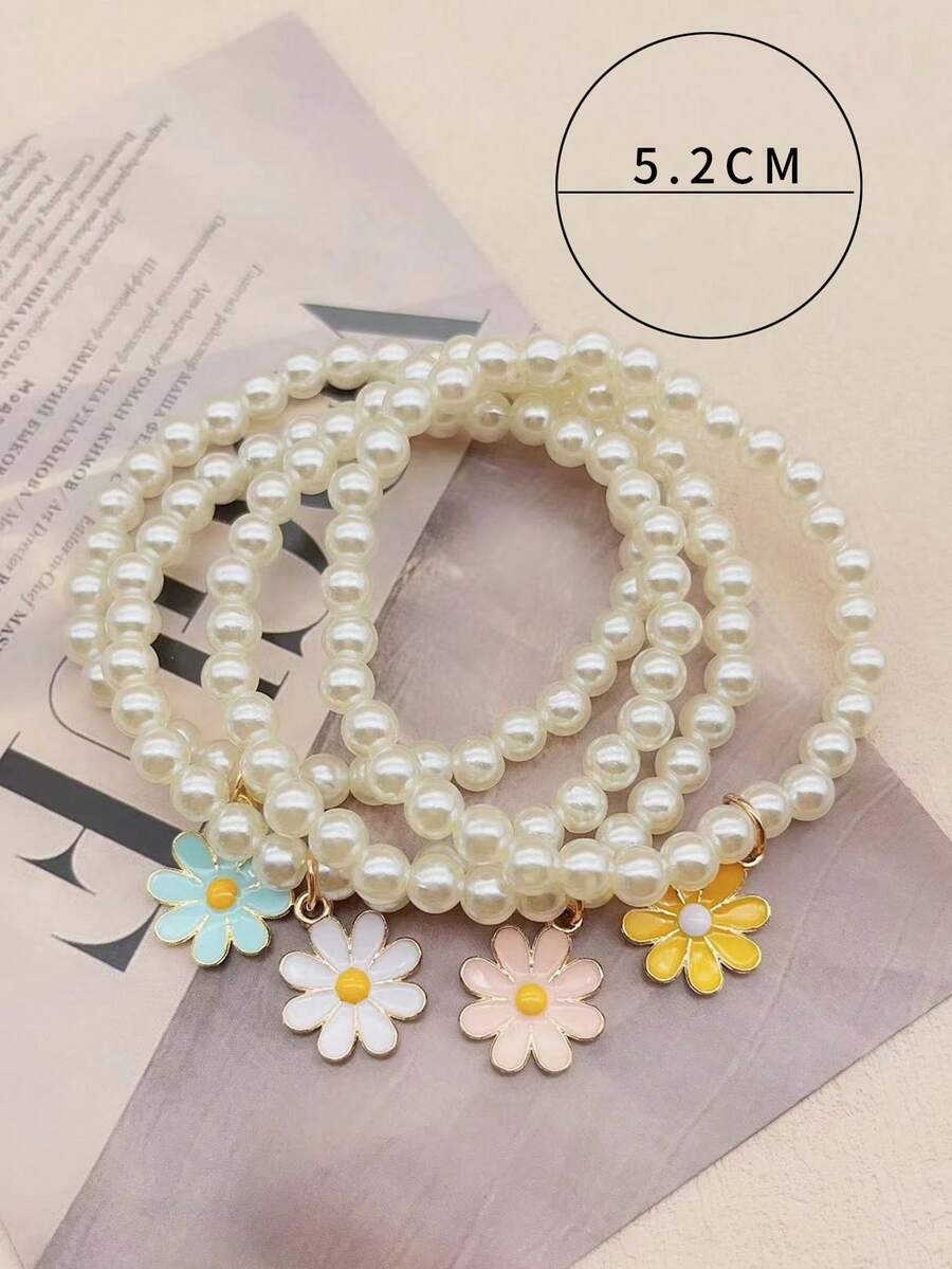 طقم إكسسوارات بنات لطيف – 4 قطع لؤلؤ وفراشة وديزي ودوار الشمس