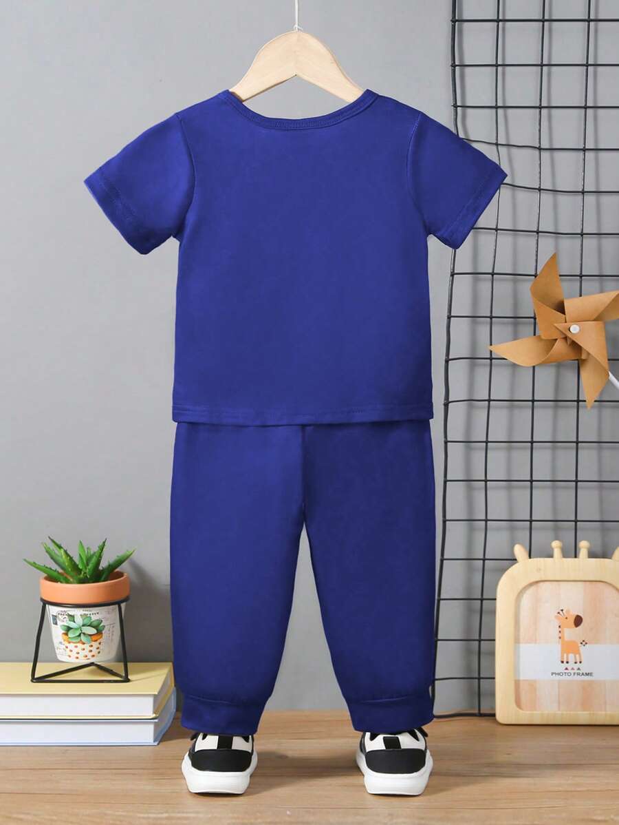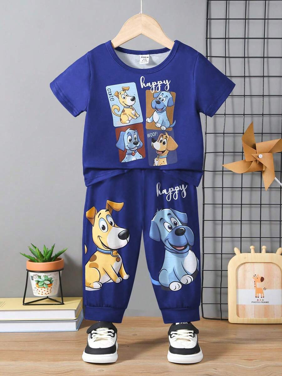 تي شيرت بطبعة كلب لطيف كاجوال من SHEIN Playful Pals مكونة من قطعتين للأطفال/الرضع