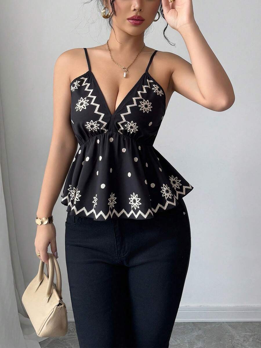 بلوزة Breezaya الأنيقة بدون أكمام وفتحة رقبة على شكل حرف V وظهر مكشوفShein