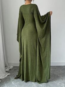 فستان نسائي ماكسي أنيق بلون سادة وياقة دائرية من إلينزيا