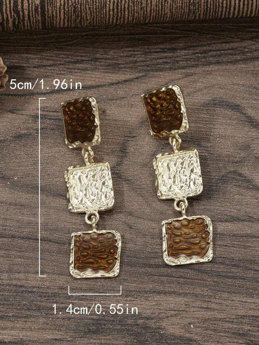 أقراط هندسية متدلية بشكل مربع باللون البني والكراميل للنساء