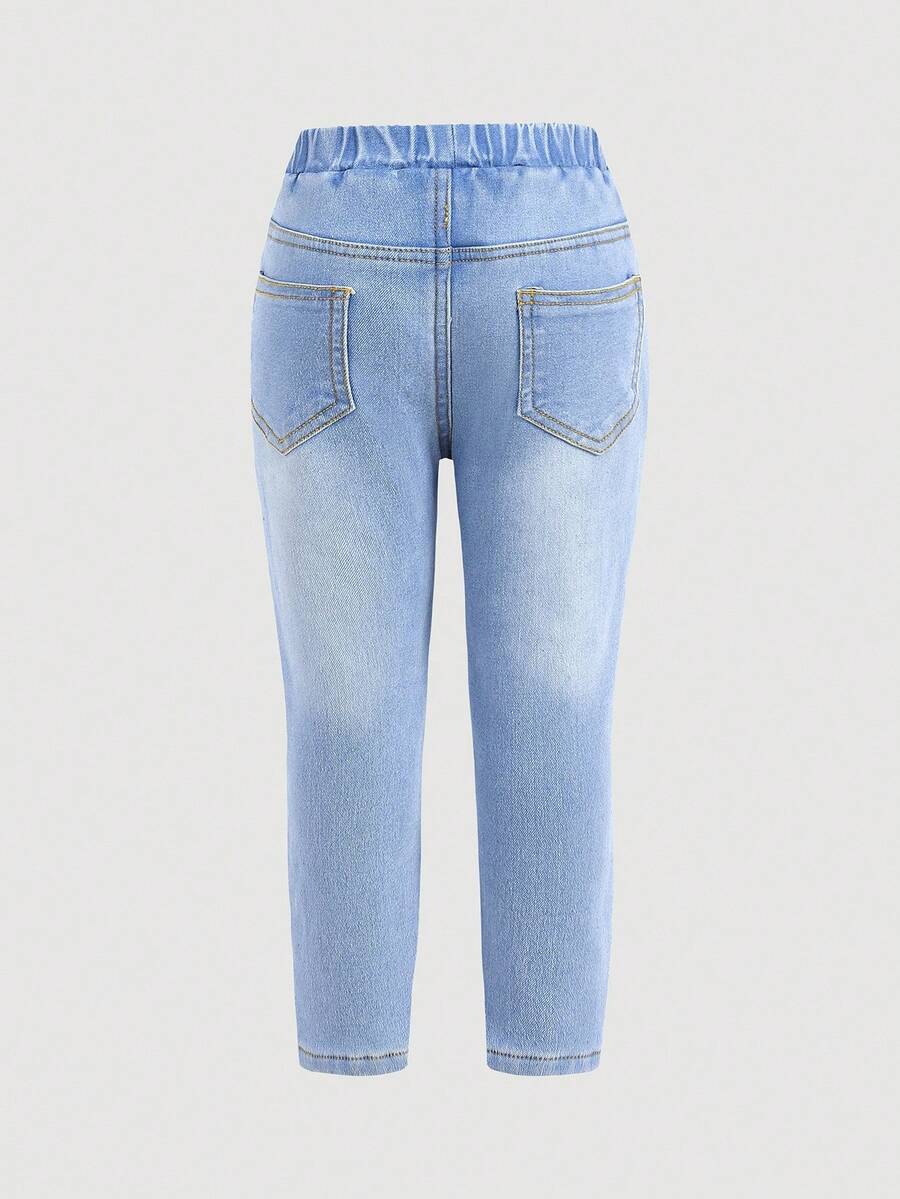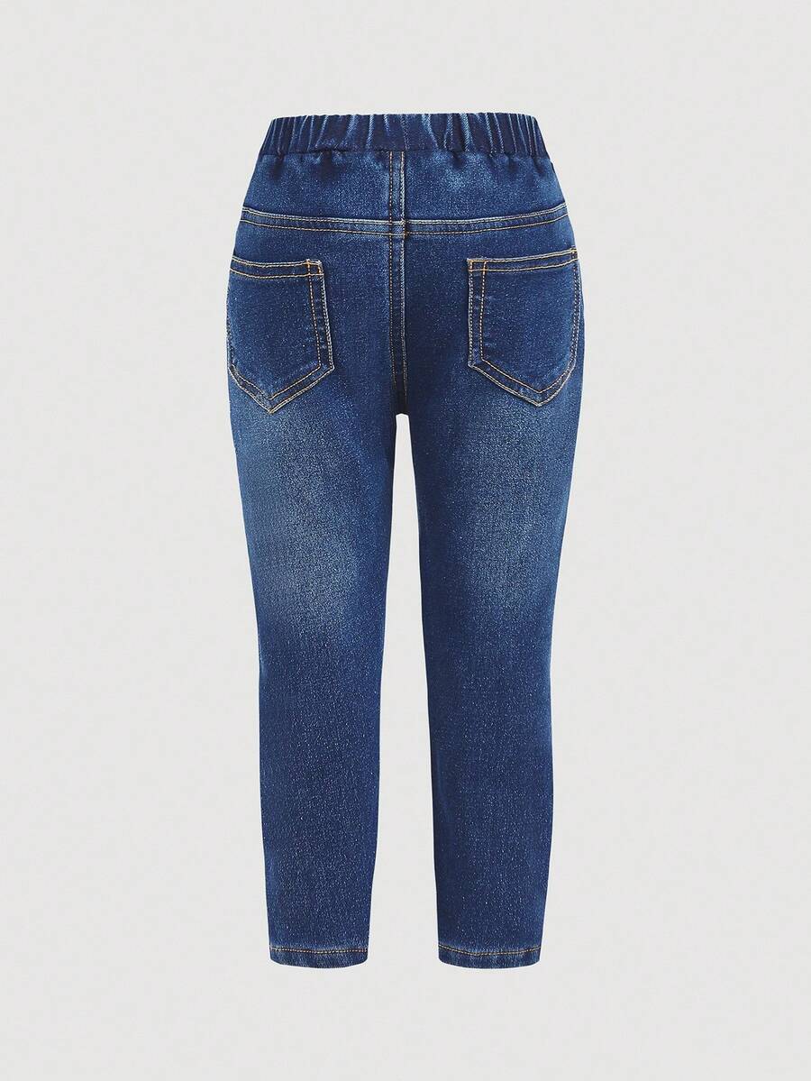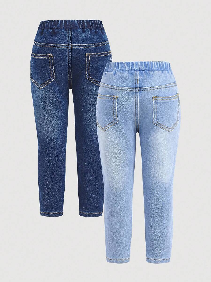 طقم بنطلون للبنات الصغيرات بتأثير الجينز وخصر مطاطي – Cozy Pixies