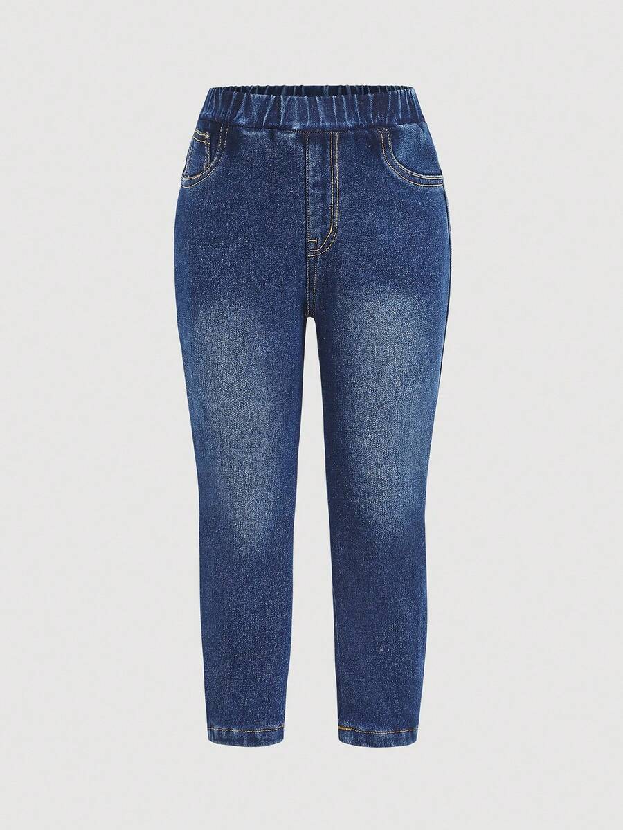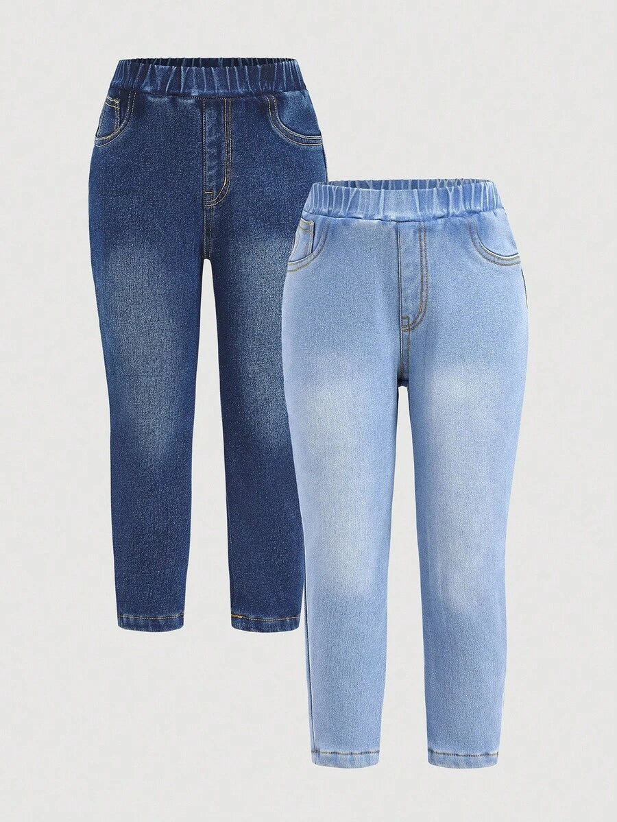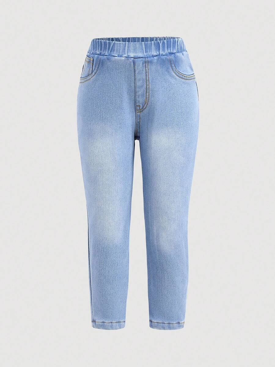 طقم بنطلون للبنات الصغيرات بتأثير الجينز وخصر مطاطي – Cozy Pixies