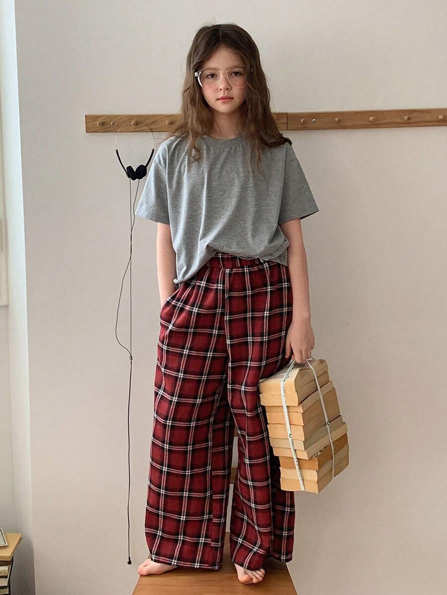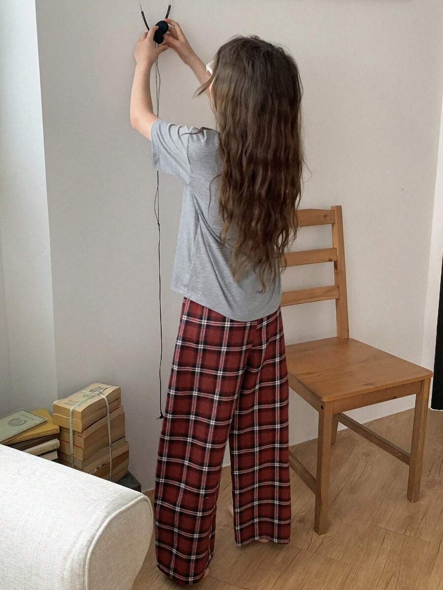 طقم منزلي مريح من HABIGUA للفتيات في مرحلة ما قبل المراهقة، مثالي لأجواء الربيع والصيف. يتكون من تي شيرت بأكمام قصيرة ورقبة مستديرة مصنوع من قماش ناعم ولطيف على البشرة، مع بنطلون طويل منقوش بتصميم عصري يمنح إطلالة أنثوية لطيفة. مثالي للاسترخاء في المنزل أو للنوم، يجمع بين الراحة والأناقة في آن واحد.