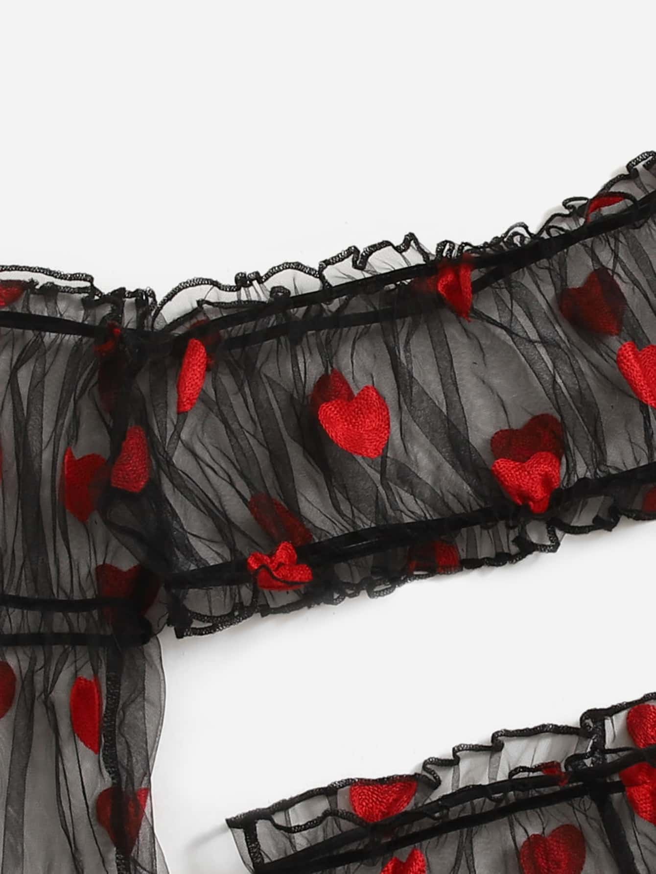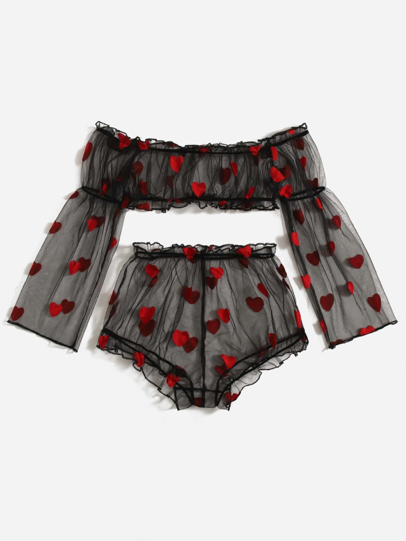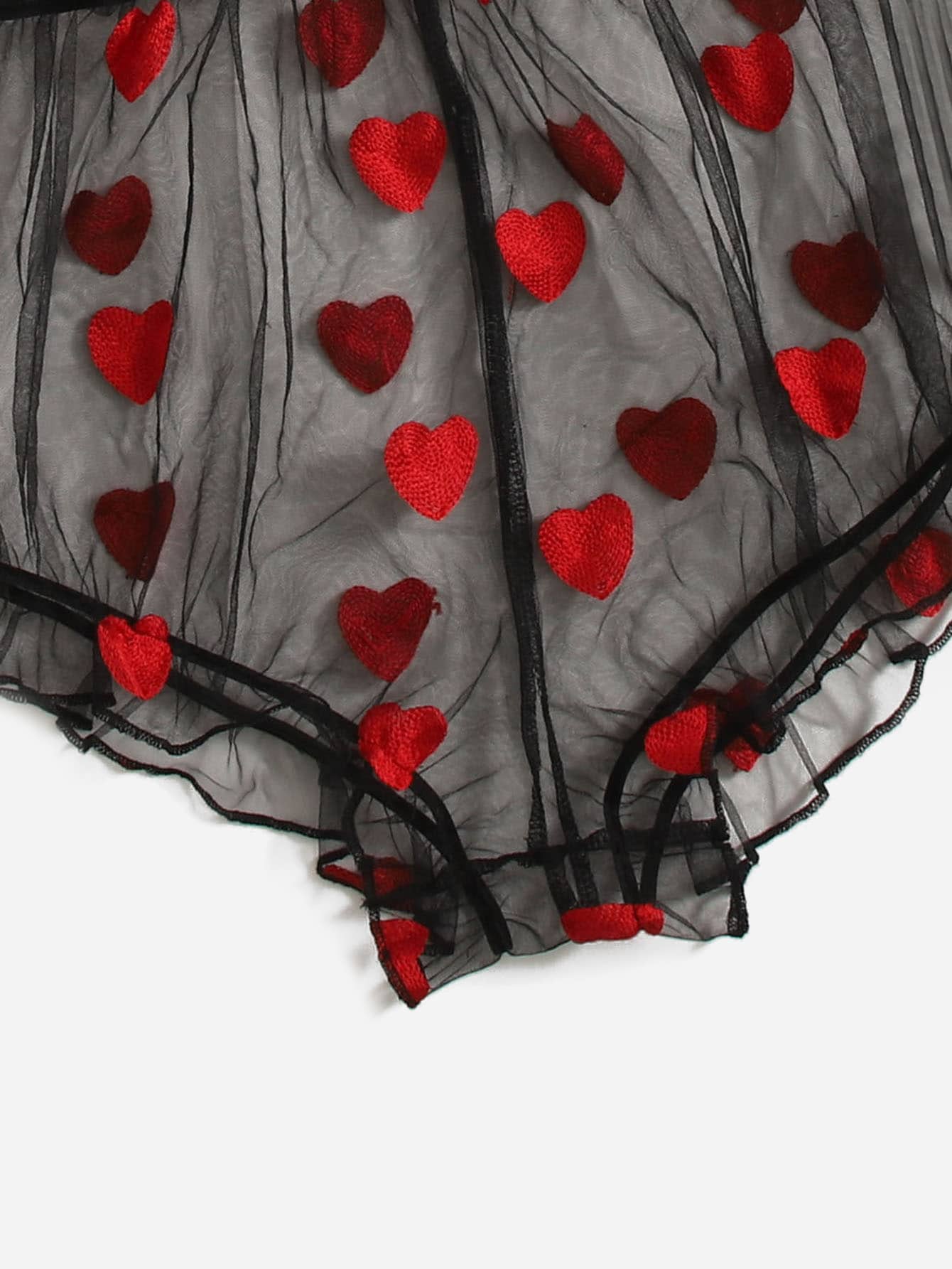 طقم ملابس داخلية شبكية مطرزة على شكل قلب