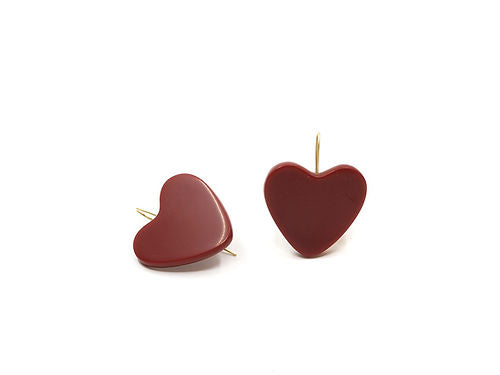 الحلقين بيجوا بتصميم قلب بسيط بلون أحمر مطفي، شكله ناعم ومناسب للإطلالات اليومية والكاجوال. الخامة واضحة وثابتة وبتدي شكل أنيق من غير أي مبالغة، وكمان الحجم متوسط فبيظهر بشكل لطيف من غير ما يكون ملفت زيادة. تصميمه خفيف وسهل اللبس، ومناسب لأي ستايل بسيط أو رومانسي.