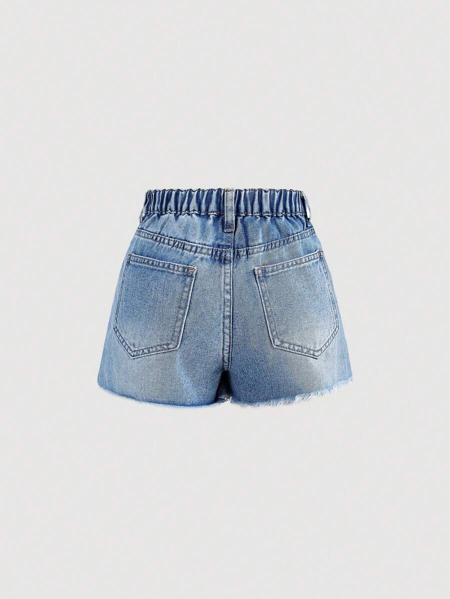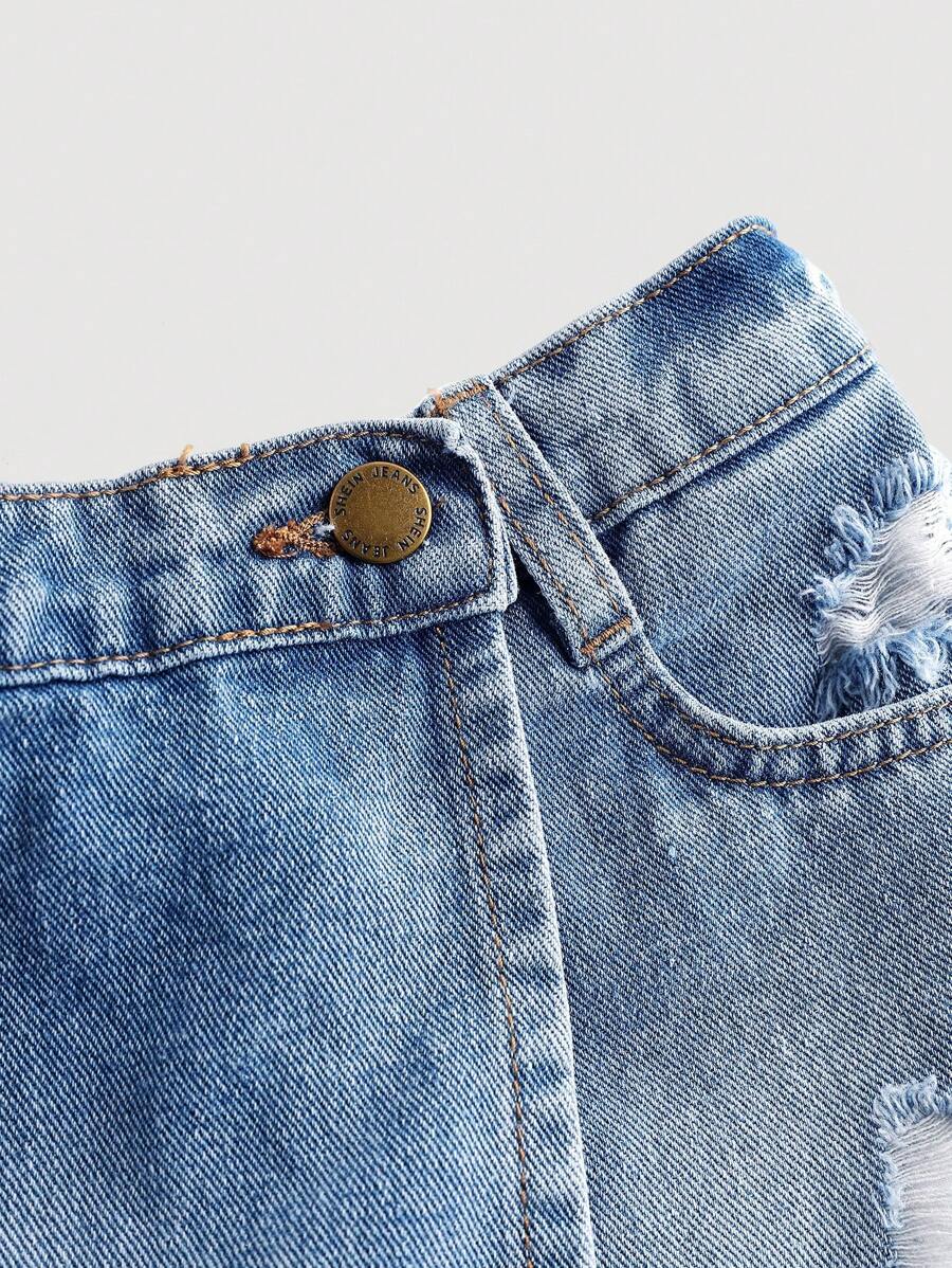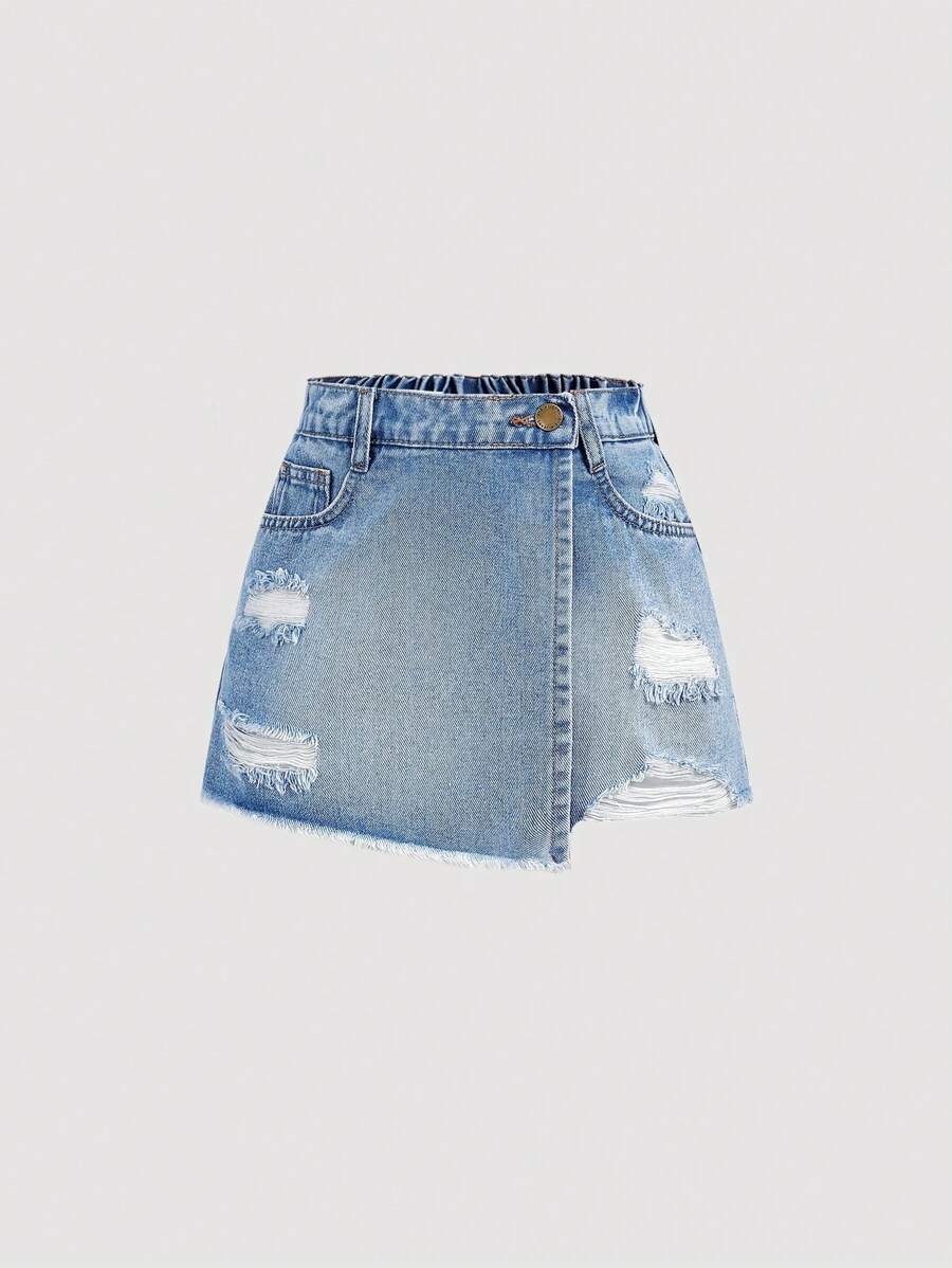 شورت-تنورة جينز للبنات بخصر عالٍ وتفاصيل ممزقة – SHEIN Girlism