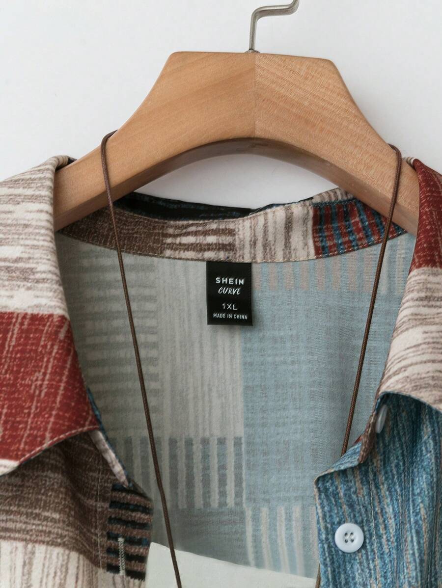 قميص كاجوال بأكمام طويلة وياقة بمقاسات كبيرة للنساء Shein