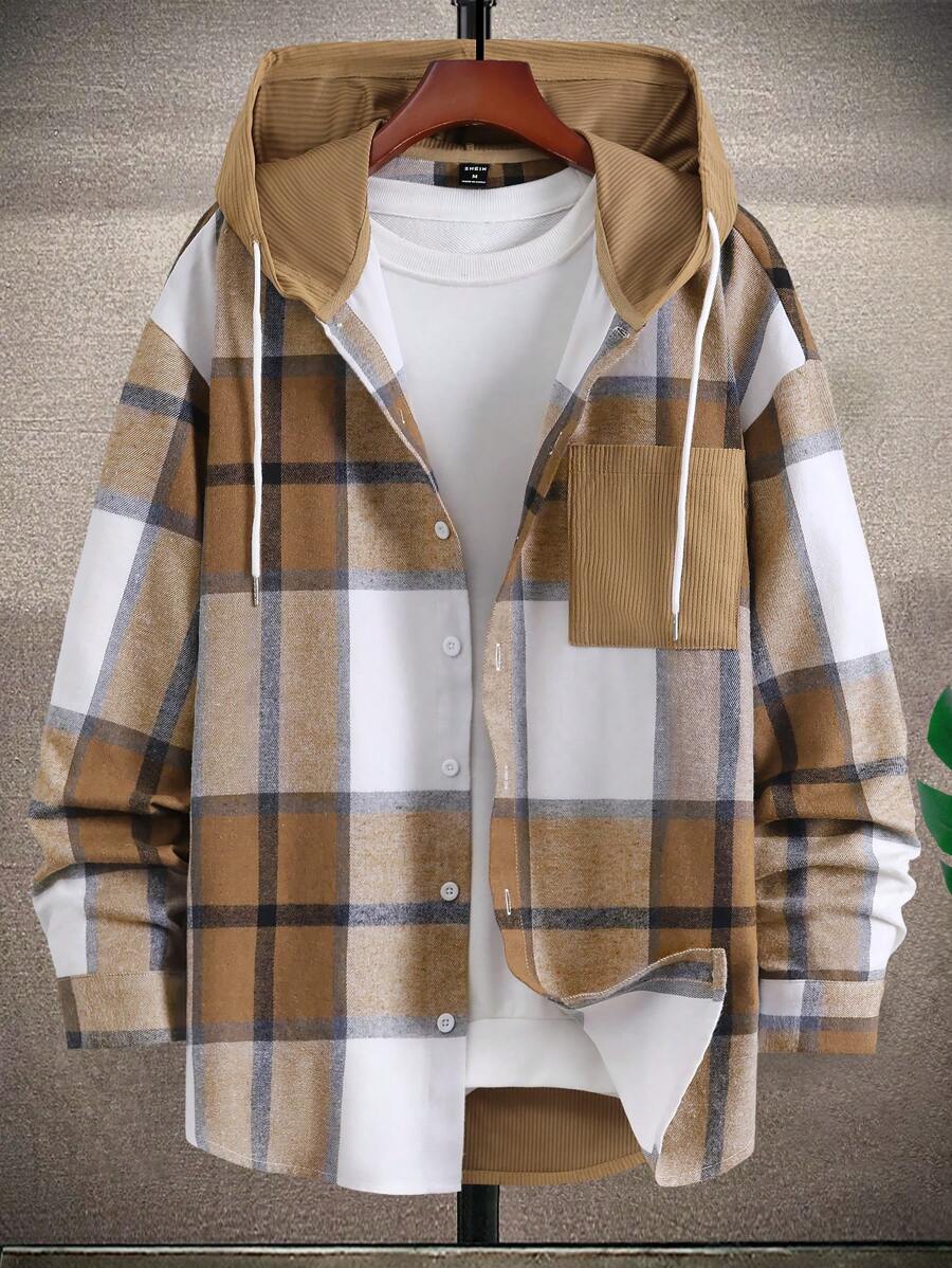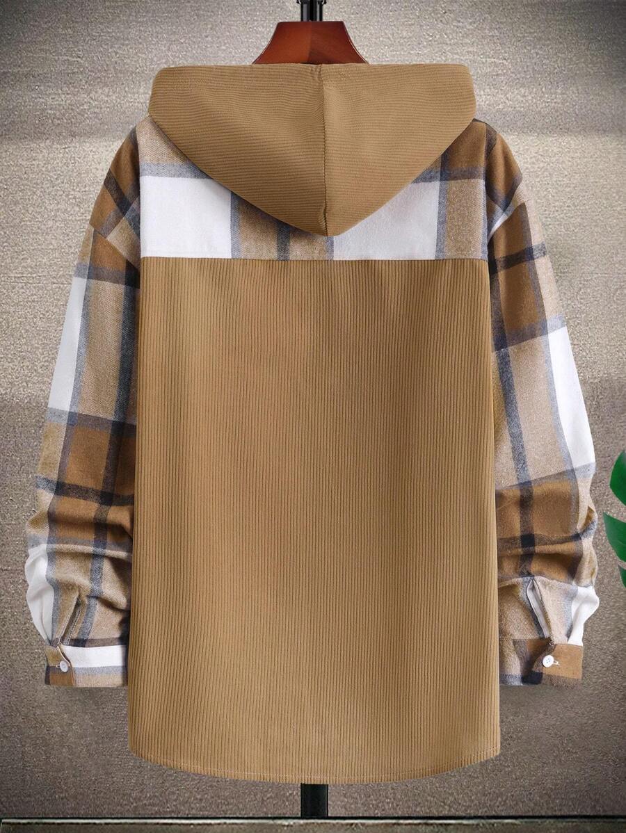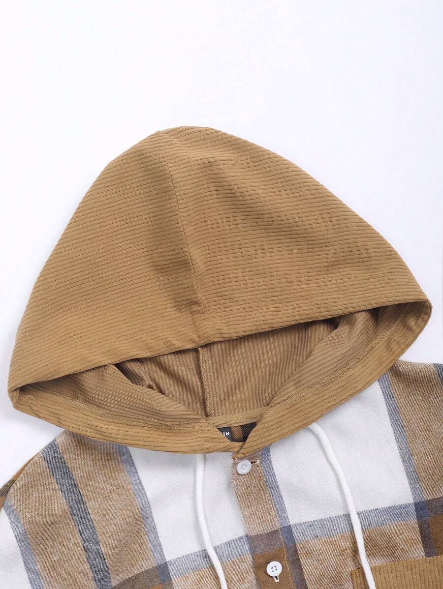 قميص مانفينيتي هوم رجالي كاجوال منقوش بأكمام طويلة ورسومات جرافيكية لفصل الربيع والخريف مع غطاء رأس برباط وجيب، بدون تي شيرت للخروج في الخريف